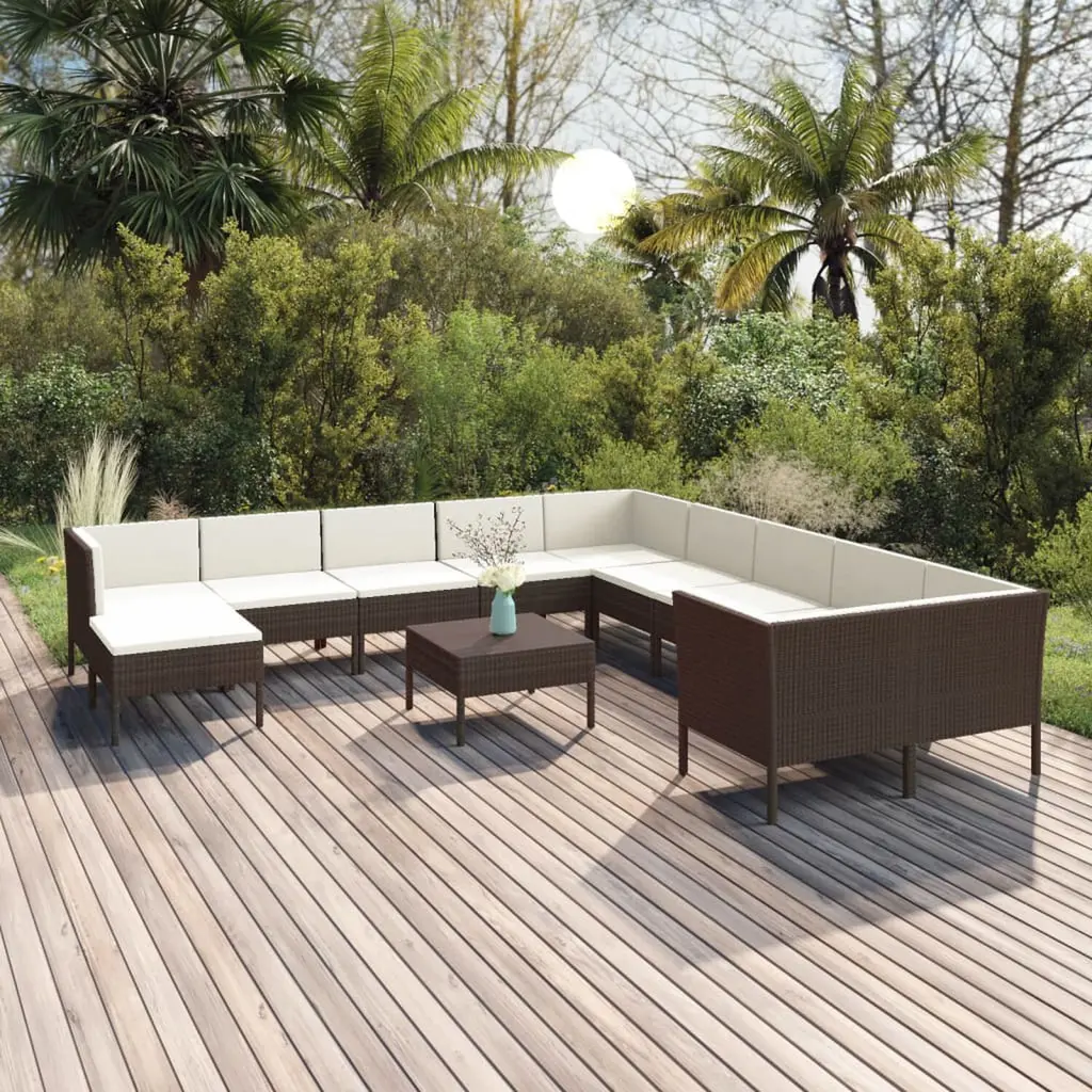 Vidaxl Garden Lounge Set Brown Poly Rattan 12 Piece Set Modular