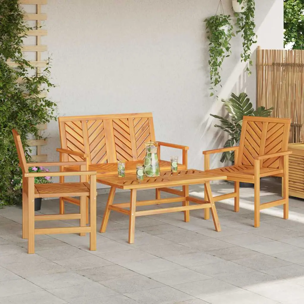 The Garden Lounge Set is your go-to outdoor seating choice, featuring a modern design that’s all about simplicity and practicality. It fits right in with any garden or patio, showcasing a rectangular shape and a lovely rich brown finish that highlights the beautiful grain of Solid Acacia wood, offering both style and strength. Perfect for various outdoor occasions, it turns everyday get-togethers into stylish and comfy experiences. High-Quality Acacia Wood: Made from solid Acacia wood, this lounge set brings a natural look that fits any garden or patio. It's tough enough to handle the elements, making it a smart choice for outdoor fun.Comprehensive Outdoor Set: The set comes with seating and a matching table, giving your outdoor space a coordinated vibe. It’s designed for comfort and practical use, perfect for all sorts of social or private outdoor hangouts.Simplistic Modern Style: Featuring clean lines and minimal fuss, this garden set effortlessly captures modern elegance. The color and design blend beautifully into any stylish outdoor decor, boosting the look of your space.Post Leg Support: Each piece has strong post legs, providing solid support and stability on different surfaces. These legs add to the rustic charm of the lounge set, ensuring it stays steady when you’re using it.Easy Assembly Required: Putting the set together is a piece of cake with two people and a screwdriver, making it simple to transform your garden. Stability and lasting quality are at the heart of this furniture, giving you peace of mind while keeping maintenance easy.