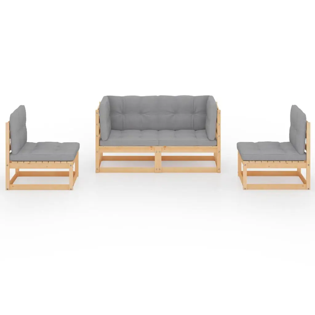 This 4-Piece Garden Lounge Set with Cushions mixes style and comfort perfectly for your outdoor area. Made from solid pinewood, it's got a natural look that fits any garden or balcony, and the weather-resistant cushions mean you can chill comfortably, whether you’re hosting a party or simply enjoying some peace outside. The smooth finish and minimalist design really lift your outdoor decor, creating a great spot for friends and family to gather. The sturdy pinewood build ensures it lasts and gives a natural aesthetic that complements gardens and balconies.The weather-resistant cushions included offer extra comfort and are easy to clean.The modular design lets you set it up the way you want, making it perfect for any space.It comfortably fits up to four people, ideal for both gatherings and chill moments.The stylish mix of brown and grey accents suits any outdoor decor, making it a chic addition to your home.