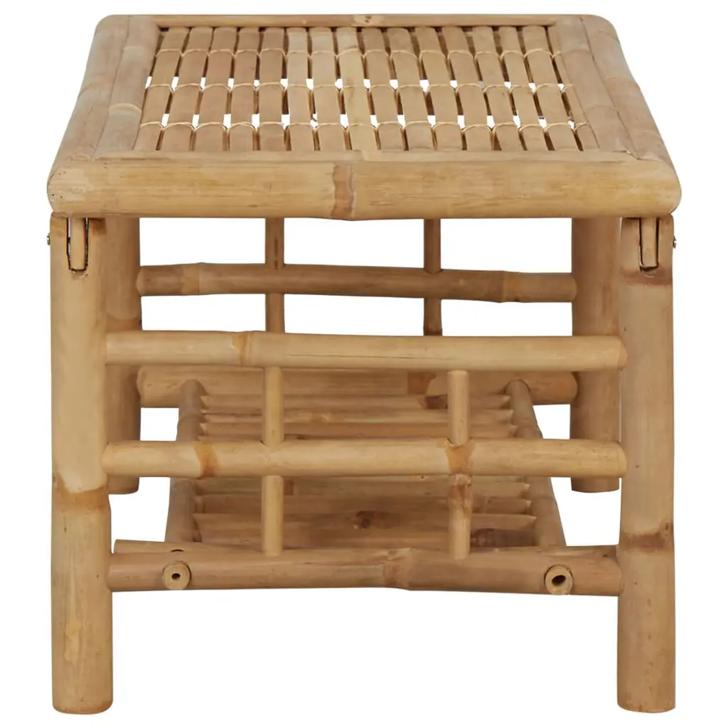 This 4-piece garden lounge set is a great addition to any outdoor spot, perfect for transforming your patio or garden into a cozy retreat. With a blend of traditional and rustic styles, it creates an inviting vibe with its natural bamboo finish and comfy cushions, just right for relaxing on warm days or having friends over in the evenings. Durable Construction: Whole lounge set made from solid bamboo, ensuring it'll stand up to the weather while keeping its great looks.Weather-Resistant Cushions: Each seat has thick, weather-resistant cushions in polyester, giving comfy seating that won’t fade or wear out.Spacious Seating: Plenty of room for up to 4 people, making it ideal for family get-togethers or a good chat with friends outside.Easy Maintenance: The cushions have zippers for easy removal and cleaning, helping you keep your lounge set looking fresh and inviting.Versatile Style: This lounge set's classic design fits any outdoor décor, making your patio, deck, or backyard look even better.