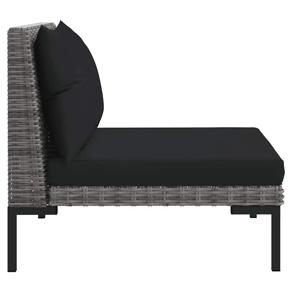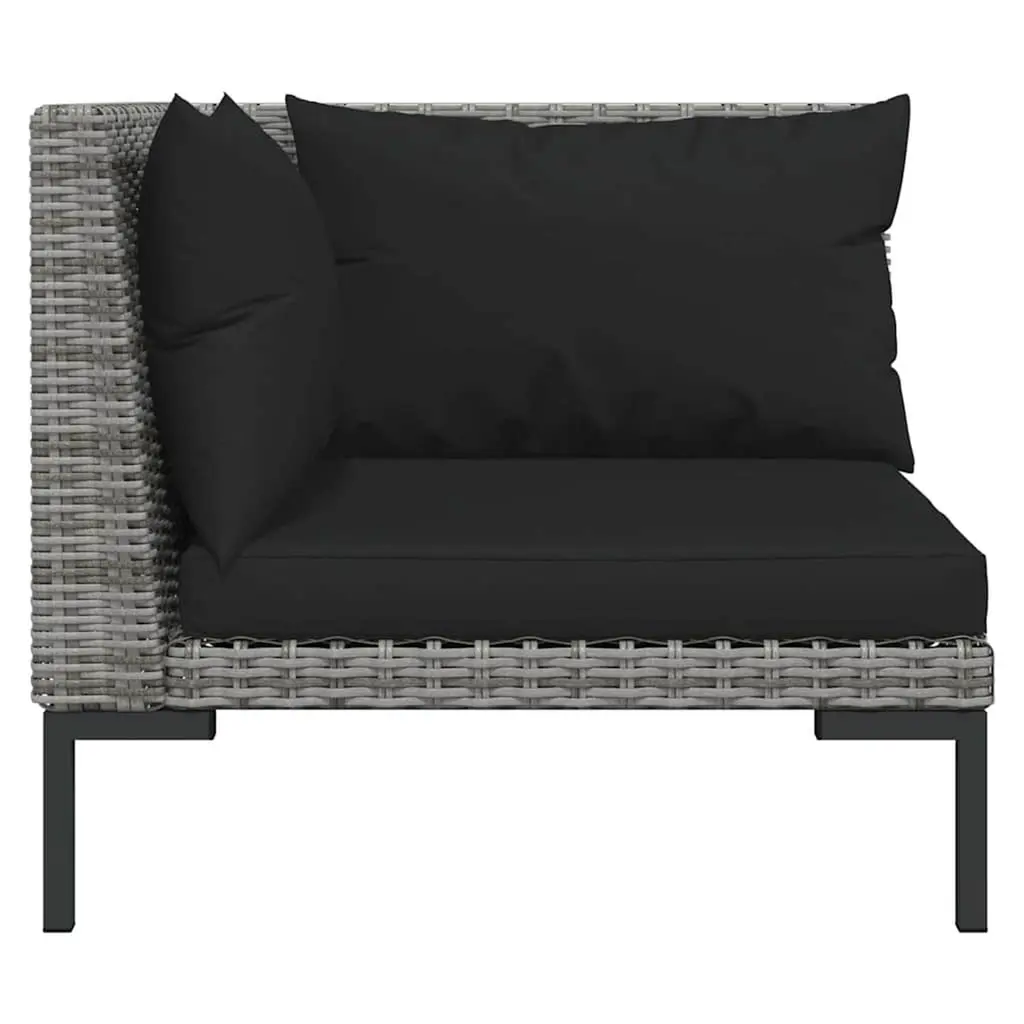 This 3 Piece Garden Lounge Set is a brilliant mix of comfort and style, just right for outdoor spots like patios, gardens, and terraces. The sleek gray poly rattan look and smooth design give off a modern vibe, making it a classy addition to any outdoor seating zone, perfect for gathering friends and family for a good time or some chill relaxation. Strong powder-coated steel frame for great support and looks, just right for outdoor furniture. This lounge set comes with removable cushions made from weather-resistant fabric, easy to care for and built to last. Spacious layout for up to five people, perfect for entertaining or enjoying quiet times outside. The corner and middle pieces let you change the setup to fit your space. Sleek modern design fits in well with different outdoor styles, enhancing the vibe of balconies and patios.