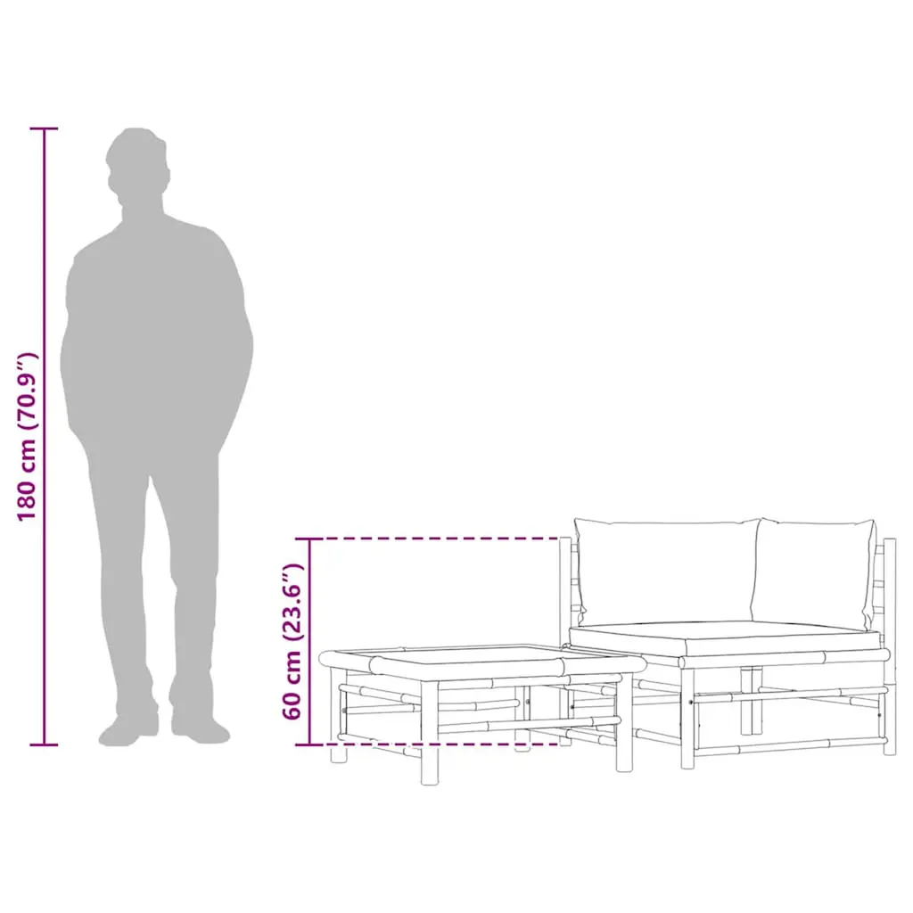 This 2 Piece Bamboo Garden Lounge Set gives you a stylish and practical seating option for your outdoor space. It’s perfect for balconies, patios, or gardens, showcasing minimalist design while providing comfort with plush cushions and sleek lines, perfect for kicking back in the sun or hosting small get-togethers. Versatile Seating: The corner sofa can seat up to two people, making it great for intimate chats or a relaxed coffee break outside. The modular design means you can easily change its layout as needed, perfect for unexpected guests.Weather-Resistant Cushions: The cushions are covered in weather-resistant fabric, making them tough against the elements while keeping comfy for long lounging sessions. No matter if it’s rainy or sunny, the cushions are ready for action to boost your outdoor experience.Easy to Clean: The cushion covers come off easily thanks to zippers, so cleaning them is a walk in the park. Just unzip and gently hand wash for fresh cushions, without the hassle of harsh chemicals or machine washing, making upkeep straightforward.Thoughtful Design: This set isn’t just about looks; it uses bamboo that complements a contemporary vibe while keeping it eco-friendly. The warm brown of the bamboo and the dark grey cushions create a soothing visual that fits right into any outdoor scene.Perfect for Various Settings: Whether you’re firing up the barbecue or just enjoying a peaceful evening under the stars, this lounge set suits all occasions. Its compact size fits snugly on balconies or terraces, making it a welcoming spot for a bit of relaxation outdoors.