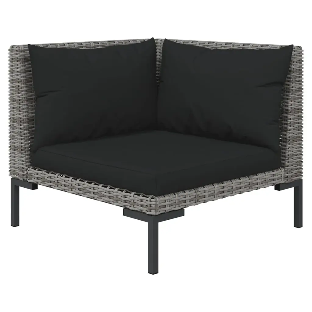 This 5-Piece Garden Lounge Set is just what you need for your outdoor area, combining comfort and style. With a modern look, this lounge set offers plenty of seating while adding a touch of elegance to your patio, terrace, or backyard. Durability: Made with weather-resistant PE rattan, this lounge set is built to last while keeping comfy. The powder-coated steel frame keeps it stable and tough, just right for outdoor fun every day.Comfort Features: With thick seat and back cushions covered in polyester fabric, this set offers a really comfy lounging experience. The zippers make it easy to take covers off and clean, keeping it looking fresh.Versatile Arrangement: The modular design of this lounge set gives you flexibility in how to set it up, letting you make your outdoor seating fit any occasion, from casual hangouts to family time, ensuring it suits your needs.Stylish Aesthetics: The dark grey shade and woven texture of the rattan create a modern and chic look that fits any outdoor decor. The sleek design adds a friendly vibe to your garden or patio.Easy Maintenance: This set is designed for convenience, with UV protection and easy-to-clean materials that stand up to the weather. Relax knowing this lounge set will keep looking good for years.