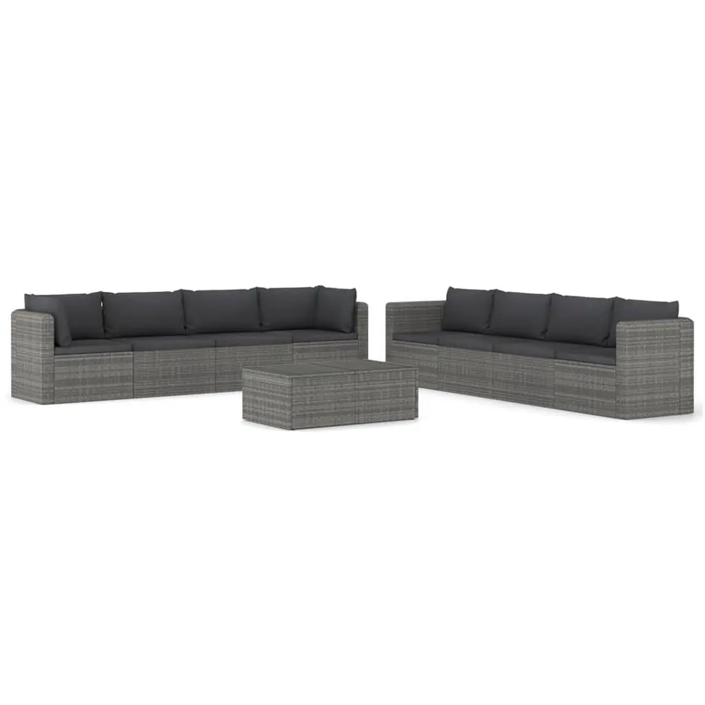 Vidaxl Garden Lounge Set Gray Pe Rattan, Powder-Coated Steel Large