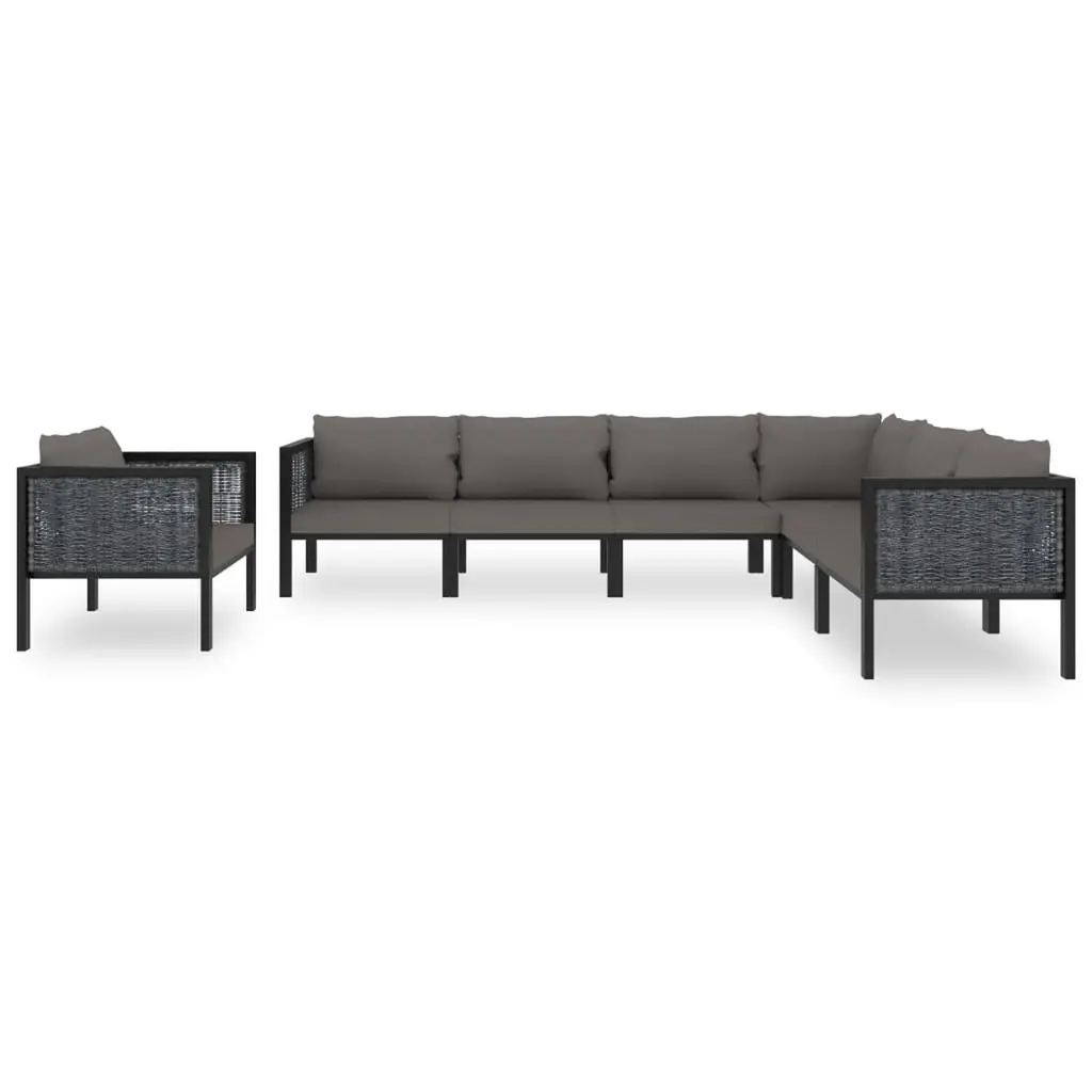 This 7-Piece Garden Lounge Set is a top-notch addition to any outdoor space, perfect for relaxing or entertaining guests. Its modern gray anthracite color and sleek look make it a stylish focal point for patios, gardens, or balconies, inviting everyone to chill in the fresh air. Modular Design: This clever design lets you reconfigure the set easily, so you can create various seating options based on your outdoor space. Perfect for having friends over or just chilling with the family.Weather-resistant Materials: Built to last with premium, weather-resistant materials, this set will brave the outdoor elements, giving you longevity and durability. Strong poly rattan and aluminum frame makes it a solid choice for all seasons.Comfortable Cushioning: Sink into comfort with the seven generously cushioned seats, designed specifically for outdoor lounging. Made with soft polyester fabric that’s weather-resistant, so you can relax without worrying about wear.Sleek Aesthetic: The modern anthracite finish and smooth feel give it a classy touch, making this lounge set a stylish asset to your garden or patio. The minimalist look fits right in with many outdoor decor styles.User-Friendly Care: Keeping this lounge set looking fab is a breeze. It combines function with style, letting you enjoy your outdoor space without stressing about upkeep.