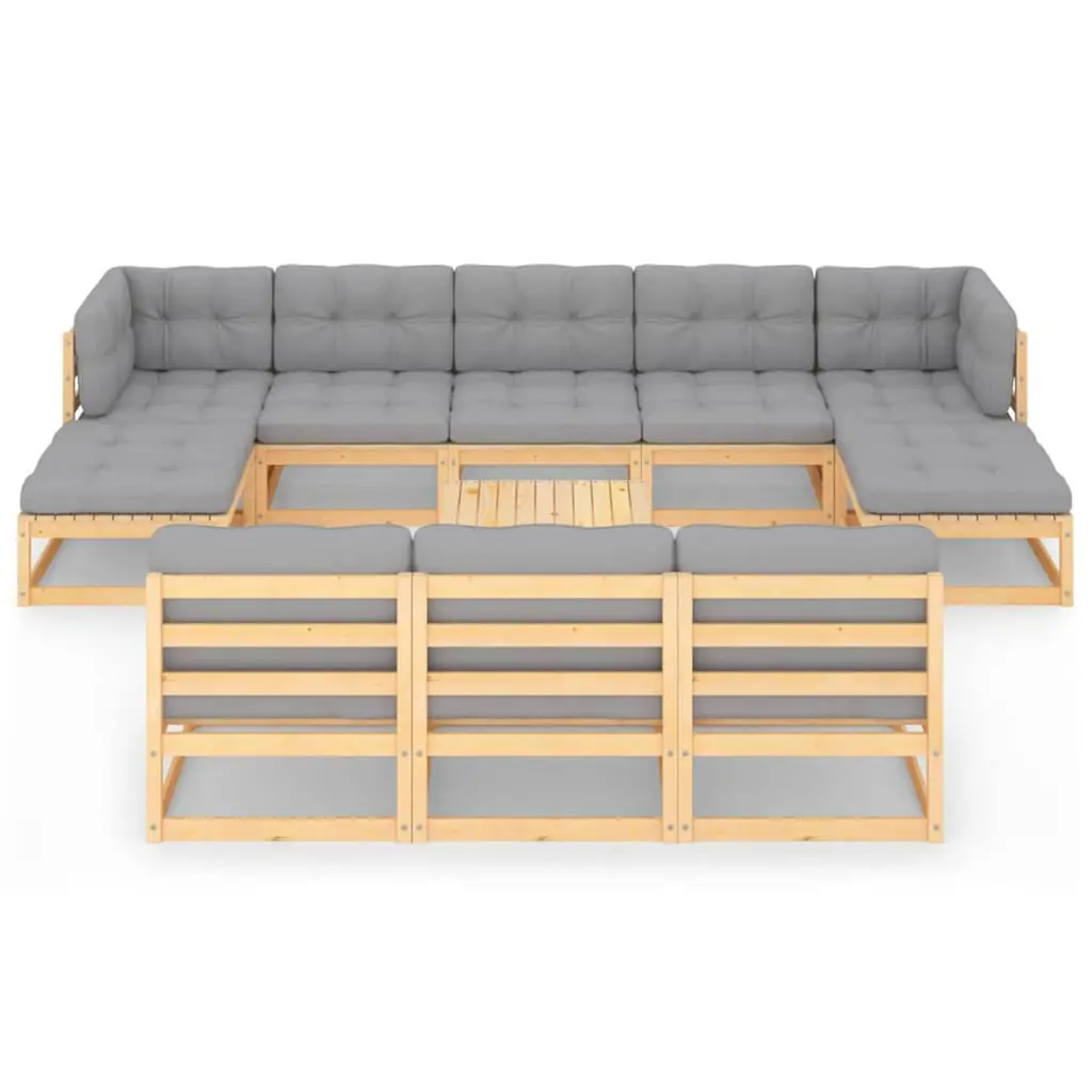This 11 Piece Garden Lounge Set mixes comfort and style effortlessly, creating the perfect spot for chilling with friends or enjoying some peace and quiet. The solid build has a rustic touch, highlighted by smooth, varnished surfaces, inviting you to dive in with a book or catch up with pals in the sun. Modular Design: Easily adjust your outdoor area to suit any occasion or setup. This feature works for busy gatherings or quiet evenings alone.Sturdy Build: Made from solid pine wood, this lounge set is built to last against outdoor conditions, ensuring many seasons of enjoyment.Comfortable Cushions: The set has fluffy seat and back cushions, made for a cozy experience without skimping on support. They’re essential for lounging comfortably for long periods.Rustic Aesthetic: A lovely natural wood finish boosts the outdoor charm, fitting in well with different landscaping styles. The rustic design looks great and brings a warm, inviting feel to your garden.UV Resistant: The materials are designed to resist sun exposure, keeping your lounge set looking vibrant even in strong sunlight, which is important for maintaining its look over time.