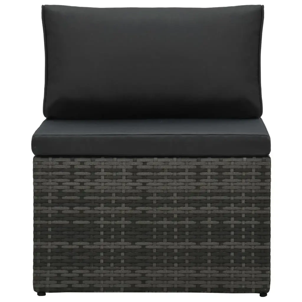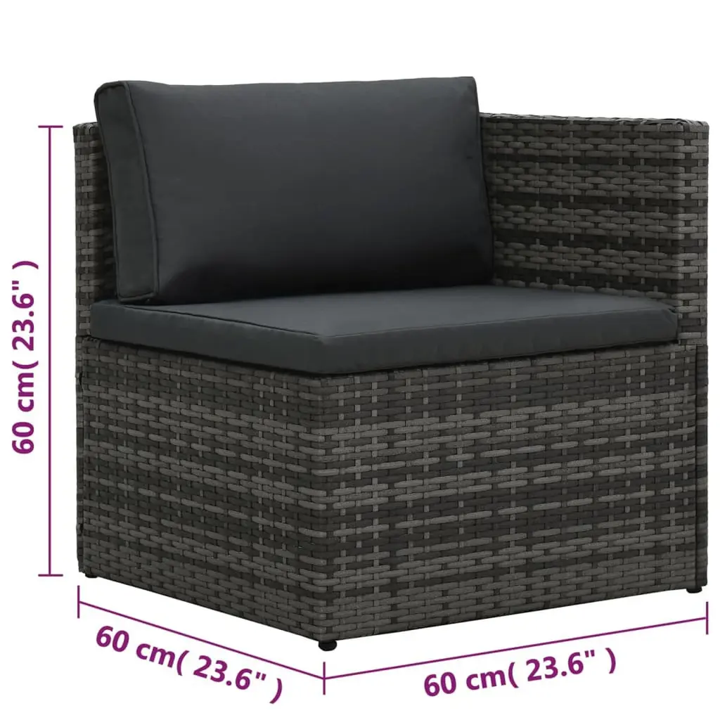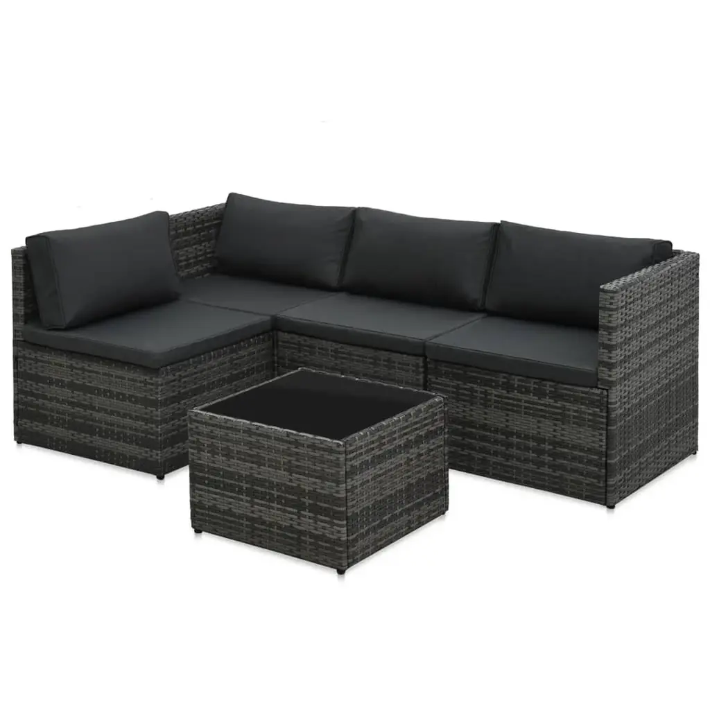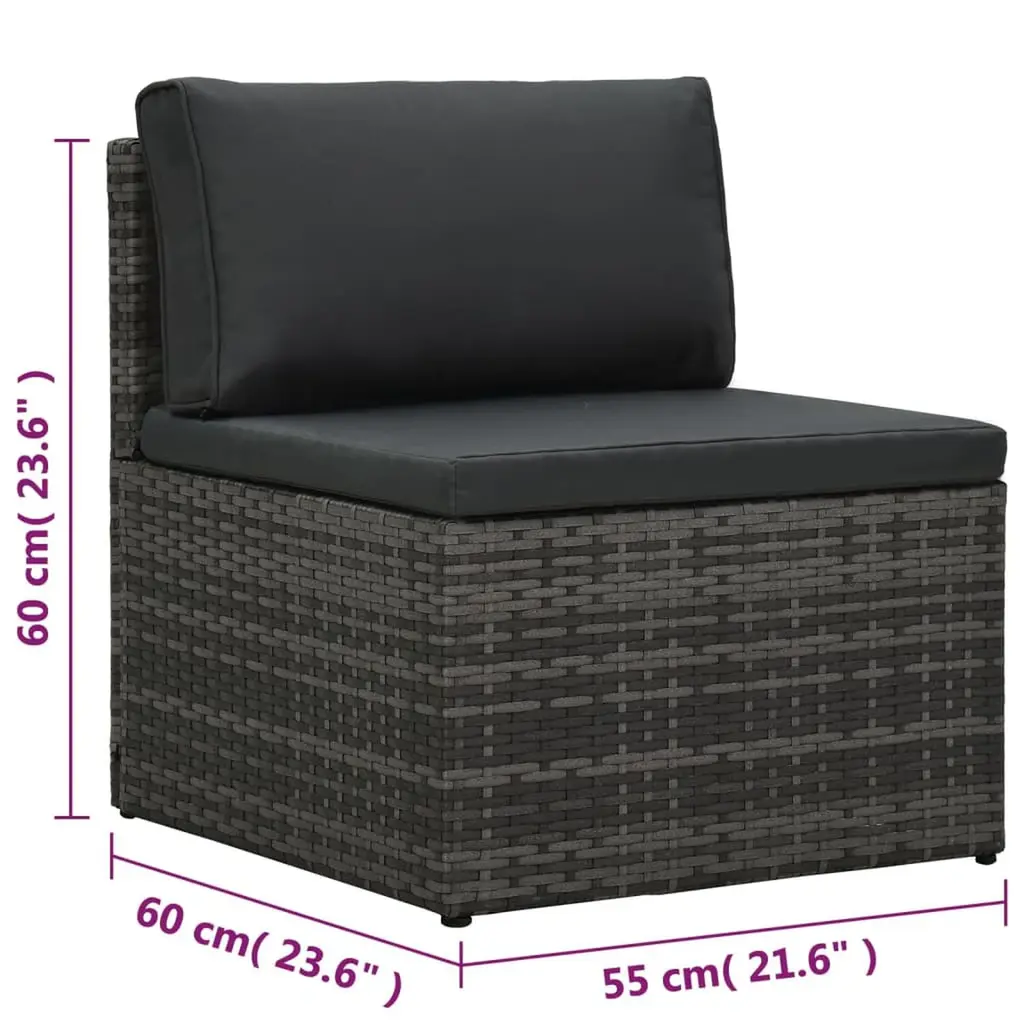 This 5-Piece Garden Lounge Set is a fab add-on to your outdoor area, blending style and comfort for proper relaxation. Perfect for get-togethers or chilling out, this contemporary lounge set adds a sleek, practical look that boosts the vibe of patios, porches, and balconies. Modular Design: The lounge set has a reconfigurable modular design, so you can customize your seating to fit any space just right. You can easily change it up for different occasions, whether hosting friends or enjoying a quiet night. Weather-Resistant Materials: Made from synthetic poly rattan, this set can tough it out against bad weather and still look good. The materials are built for durability, ensuring it lasts without losing its style. Comfortable Seating: The plush polyester cushions add comfort, making it ideal for long lounging sessions. They bring depth and coziness, inviting you to chill out and enjoy the outdoors. Modern Aesthetic: The sleek lines and understated color of grey and anthracite deliver a chic look that suits any outdoor setup. This style's not just practical but adds a classy touch to your garden, patio, or balcony. Easy Maintenance: Thanks to weather-resistant materials and removable cushion covers, keeping this garden lounge set looking fresh is a breeze. Just a regular clean is enough to keep it inviting, making it great for busy lifestyles.