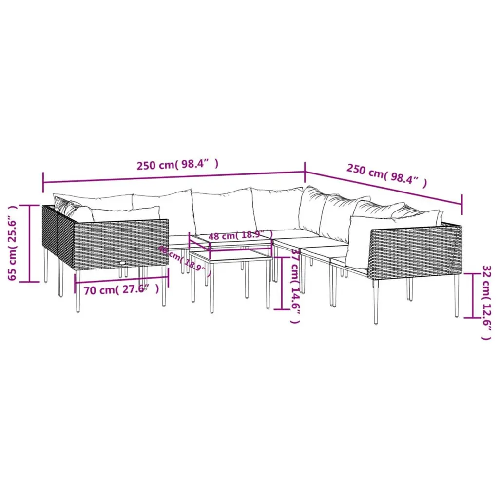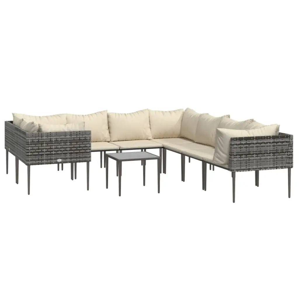 This 9-Piece Modular Garden Lounge Set combines modern style with practical use, making it a perfect choice for your outdoor areas. Carefully made from tough synthetic poly rattan and strong steel, it brings you both comfort and style, flaunting classy grey tones that fit all kinds of garden themes. Picture yourself lounging in the sun with friends and family, all plopped down on thick cushions that are just begging you to chill out and catch up. Modular Design: The adjustable configuration allows for versatile layouts, accommodating different outdoor spaces and gatherings.Weather-Resistant Materials: Made from robust PE rattan, this set withstands the elements, ensuring long-lasting enjoyment year-round.Comfortable Cushions: Each cushion features a removable cover, providing easy maintenance while enhancing comfort for hours of leisure.Large Capacity: With sufficient seating space for up to nine individuals, this garden lounge set is perfect for entertaining larger groups.Easy Care: Maintenance is a breeze with wipeable surfaces and removable cushion covers for added convenience.