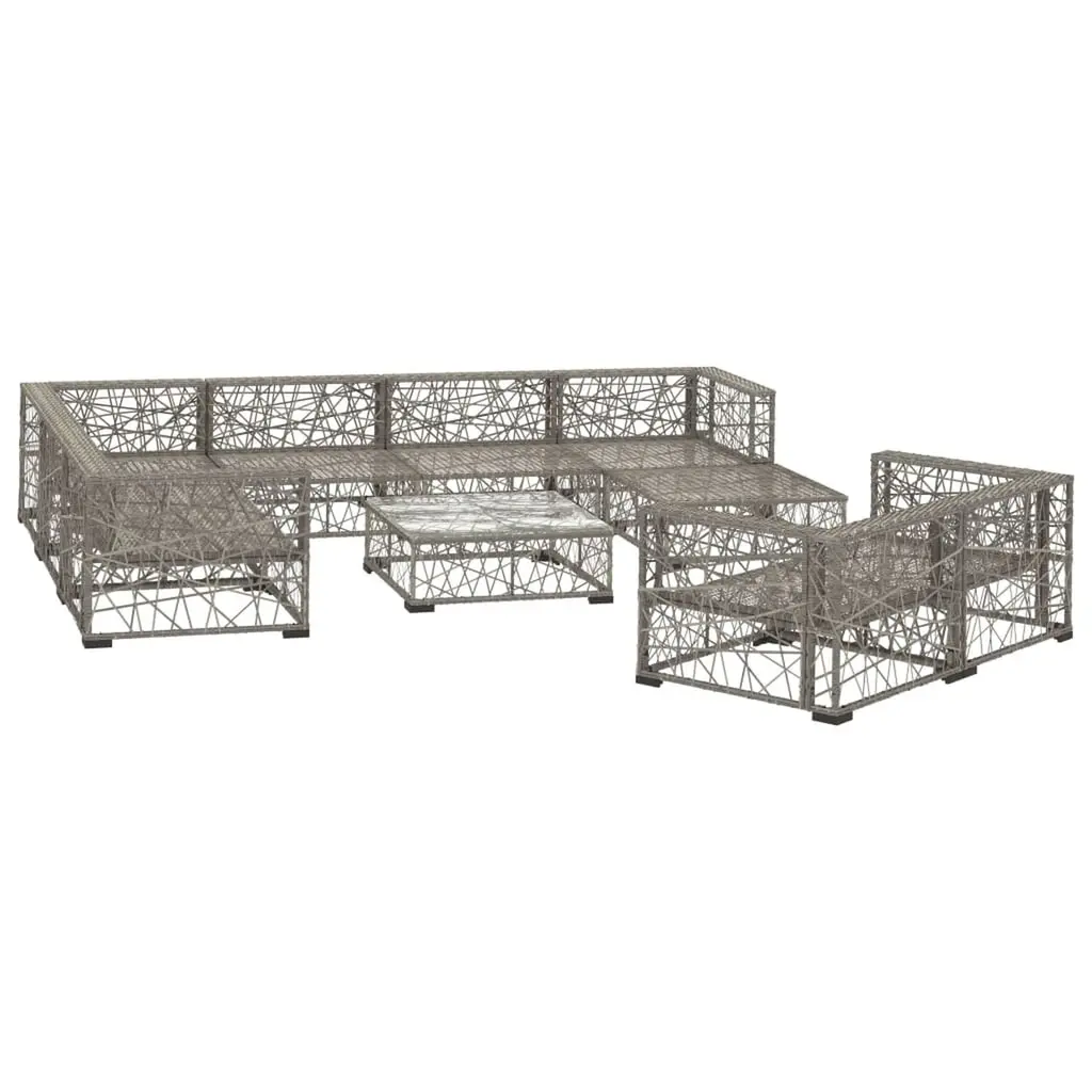 This 10-piece outdoor garden lounge set is all about modern style, adding elegance and comfort to outdoor spaces. The grey poly rattan weaving has a lovely look, while the soft cushions create a comfy vibe for gatherings or just chilling out. Durability: Made from high-quality PE rattan, this lounge set can handle various weather conditions, ensuring it lasts in outdoor spaces. It's designed to resist fading and wear, making it great for long-term use.Spacious Design: With seating for up to 10 people, it's perfect for family gatherings and entertaining guests while enjoying the outdoor views. The sofas are roomy enough for everyone to sit comfortably.Easy Maintenance: The removable seat cushions have zipper closures for easy cleaning, so they stay looking great with minimal effort. Just unzip, wash, and re-zip for a fresh look!Modular Configuration: The sectional nature of this set allows for various arrangements, letting you adapt it to your garden or patio layout as needed. Rearrange the pieces to create a setup that fits your style and enhances your space.Sleek Look: The powder-coated steel frame and tempered glass table add a chic touch to your outdoor décor. The smooth finish and sleek textures create a polished, modern vibe that complements any style.