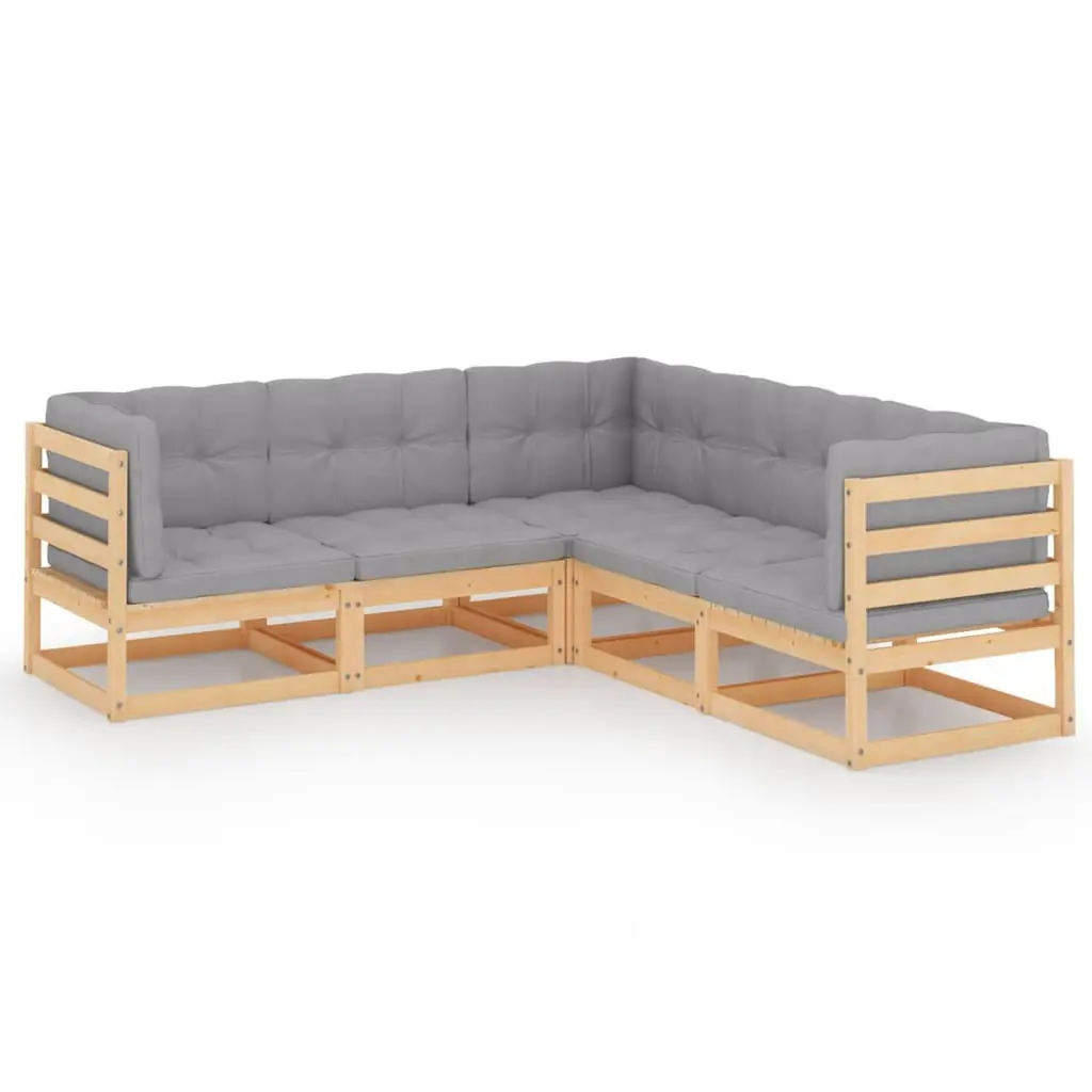 This Modern 4-Piece Garden Lounge Set is made for outdoor relaxation, featuring a stylish look that fits right into your garden or patio. Made from solid pine wood, it offers a comfy space for hangouts with family and friends, making it a real stand-out piece for any outdoor area. Modular Design: This lounge set lets you easily change it into different styles to suit your space and mood, perfect for any occasion.Sturdy Construction: The solid pine wood build guarantees durability, standing up to daily use while looking great with nature.Weather-Resistant Materials: All parts are made from weather and UV-resistant stuff, so you can use your set in any season without worrying about wear and tear.Comfortable Seating: Each seat has soft, plush cushions with zippers for easy cleaning, making it comfy for solo lounging or hosting friends.Easy Maintenance: With removable cushion covers that wash easily, taking care of this lounge set is a breeze, letting you spend more time enjoying your space.