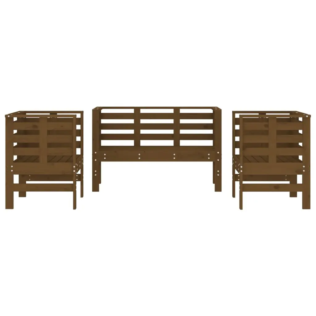 This Honey Brown Solid Wood Garden Lounge Set is a fab addition to any outdoor space, mixing style with practicality. Crafted from solid pine wood, it brings a charming rustic vibe to gardens, patios, or balconies, making it just right for relaxing or socializing with friends and family. The lovely design makes your garden or patio a fab spot for chilling out. Built from quality solid pine wood, this lounge set's sturdy yet good-looking. Fits up to 3 people comfortably, which is awesome for family hangouts or chats with friends. Perfect mix of Scandinavian style and practicality, this lounge set adds a cozy touch to any outdoors. The garden bench measures 39.4 in length, so it fits nicely in various spaces.
