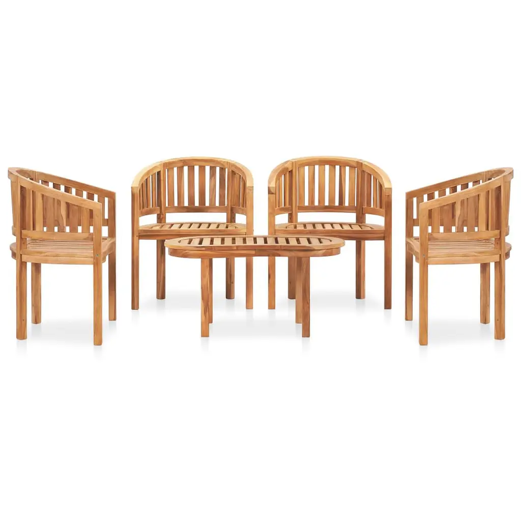 This 5 Piece Outdoor Teak Lounge Set is the perfect blend of style and practicality, making it a must-have for any outdoor space. It’s made from natural teak wood, which looks classy and lasts ages, setting the stage for relaxing meals or just chilling in your garden or on the patio. The smooth finish and the rounded shapes of the furniture welcome guests with open arms, creating a nice vibe, great for summer get-togethers or fall hangs. Whether you’re throwing a BBQ or just enjoying a quiet read, this lounge set gives you comfort and good looks outdoors. Durable Teak Construction: Unlike ordinary outdoor furniture, this teak set is tough against rain and sun, allowing for long-term use without losing its fab looks. Just give it some regular care to keep that rich color.Ergonomic Design: With comfy, shaped seats and backs, this lounge set makes for easy relaxing or dining outdoors, great for family gatherings or intimate meals.Versatile Use: Perfect for garden parties, balconies, or terraces, this set makes for a stylish and handy seating area where friends and family can enjoy their time outdoors.Attractive Natural Finish: The oiled finish of the teak shows off its grain and gives it a warm, earthy vibe. It fits right into any outside decor, making it a standout piece for your outdoor lifestyle.Easy Maintenance: The smooth surfaces are a doddle to clean with mild detergents, keeping things tidy without a load of elbow grease or harsh chemicals.