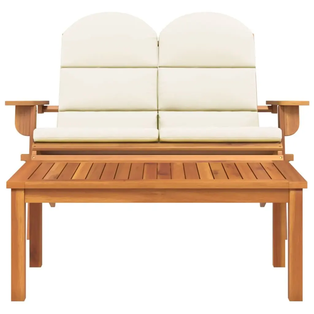 This 2-piece Garden Lounge Set has a fab mix of function and style, featuring a lovely blend of natural acacia wood and soft polyester for a comfy seat. Perfect for balconies, gardens, or patios, its modern farmhouse design adds warmth and elegance to your outdoor area, making it a great spot for relaxing weekends or casual catch-ups with friends and family. Foldable Convenience: This garden lounge set’s foldable design means you can easily tuck it away when you’re not using it, keeping your outdoor area neat and tidy.Built to Last: Made from solid acacia wood, it boasts a rich finish that highlights the wood's natural beauty. With an oil treatment, it stands up well against the elements, ensuring it lasts for ages.Plush Comfort: Cozy cushions filled with quality polyester make for a comfy sitting experience. They come with zippers for easy cleaning, so it stays fresh season after season.Stylish Aesthetic: The natural wood finish and smooth texture give it that charming farmhouse feel. The warm tones blend perfectly with any garden decor, creating a relaxing outdoor oasis for you to enjoy.Perfect for Small Spaces: Slightly compact but roomy enough for two adults, this lounge set fits snugly in smaller garden corners or bigger patios without crowding the area.