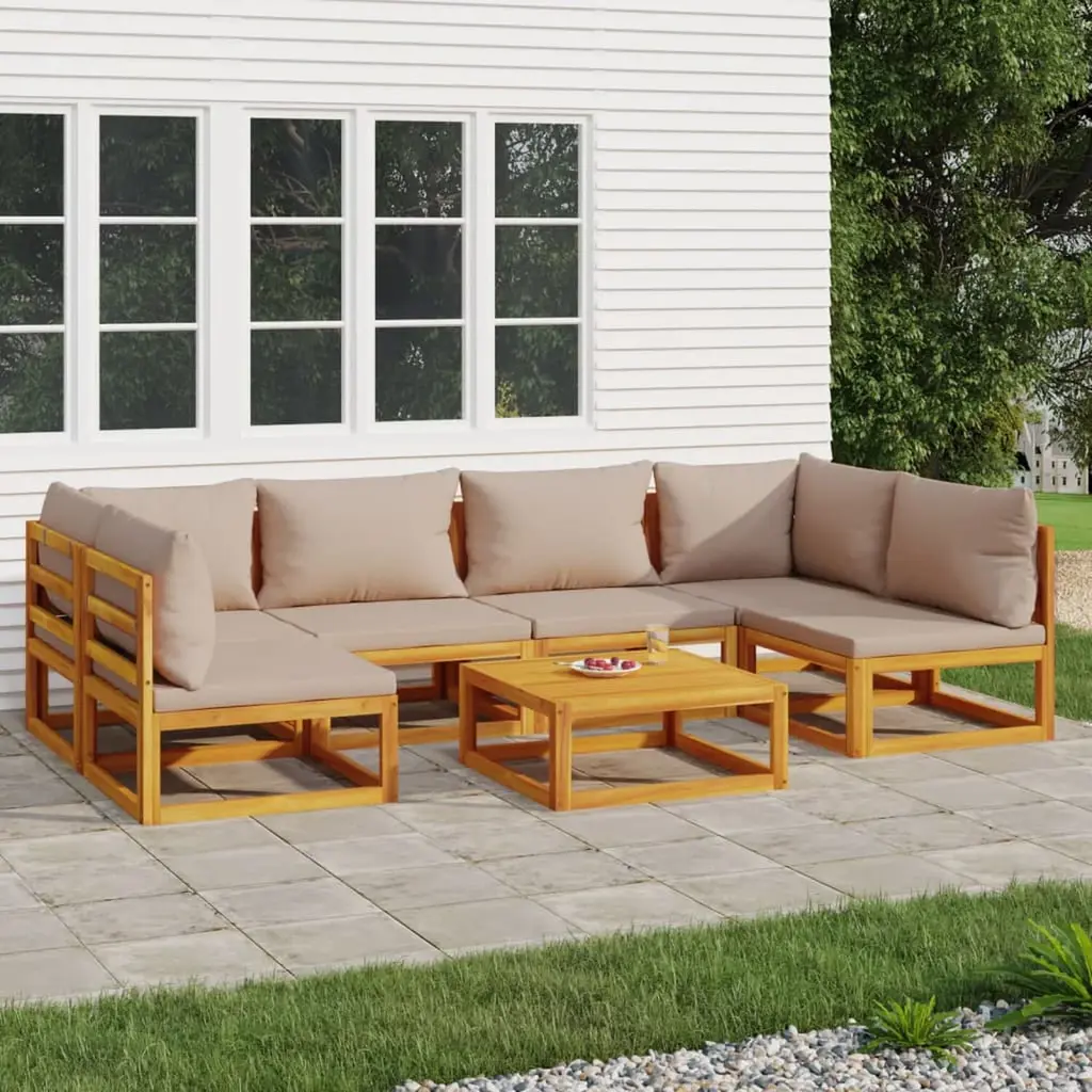 This 7-piece garden lounge set is the perfect mix of style and comfort, adding a touch of sophistication to your outdoor living space. Made from solid acacia wood, the lounge set boasts a warm taupe finish that goes well with its rustic farmhouse style, inviting friends and family to gather for coffee and relaxation. Modular Versatility: The lounge set’s modular design is a breeze to reconfigure, making it great for different outdoor setups. Whether you want a roomy layout for parties or a snug spot for two, this set adapts to your vibe smoothly. Durable Acacia Wood: Made from high-quality solid acacia wood, this furniture will stand the test of time, ensuring a solid and sturdy structure. The oiled finish protects the wood while showing off its nice natural grain—perfect for the outdoors. Comfortable Cushions: Each seat has a soft outdoor cushion, built to resist fading and moisture. With removable covers, they’re straightforward to clean, keeping your lounge set looking fab. Stylish Color Scheme: The taupe of the cushions plays up the warmth of the wooden set, creating a friendly ambiance. This stylish palette blends in nicely with any patio or balcony decor. Spacious Seating: This set has room for up to 8 people, perfect for hosting friends or enjoying a quiet night outside. Each piece has generous dimensions, ensuring comfort during long hangs.