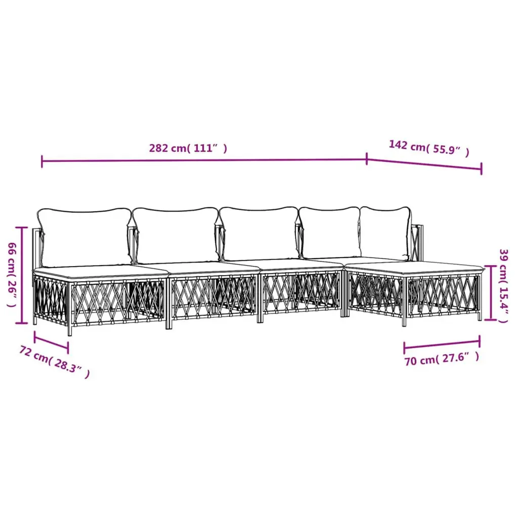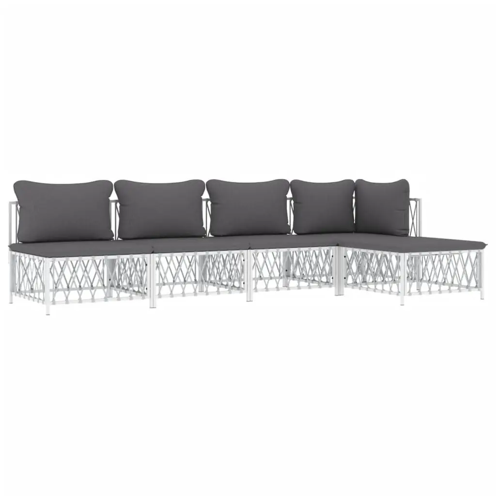 This 5 Piece Garden Lounge Set with Cushions gets a lovely mix of comfort and modern design for your outdoor space. Great for your patio or garden, its sleek look and neutral colors create a welcoming vibe for socializing and chilling out, making it prime for gatherings or lazy afternoons soaking up the sun. Versatile Configuration: The modular design allows for different seating setups, comfy for up to 5 people, great for both chats and larger gatherings. Weather-Resistant Materials: Made from quality powder-coated steel and tough fabric, this set is built to last outdoors while looking good. Comfy Seating: Each piece comes with soft, removable cushions made for outdoor lounging so you can relax for hours. Stylish Appearance: Its modern look, featuring a mix of white and dark grey, adds a touch of elegance to your outdoor space and fits in with any garden or patio. Easy Maintenance: The cushion covers come off easily for cleaning, ensuring your lounge set stays fresh and inviting for years to come.