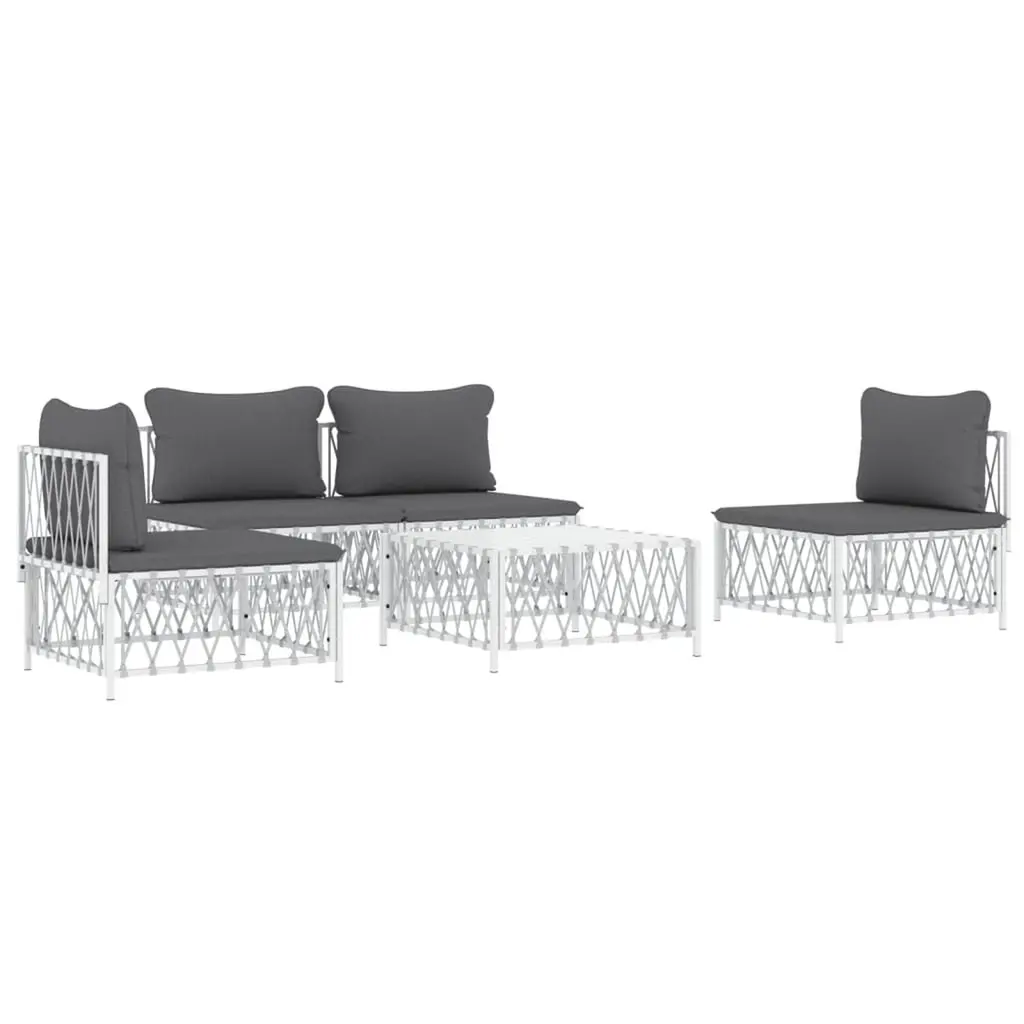 This 5-piece Garden Lounge Set is designed to improve your outdoor living experience with its modern look and comfy seating. Made from strong materials, this set fits right in with any patio or garden, creating a fab spot for chilling and socializing. Modular Design: Rearrange the lounge set to your liking, making it perfect for various outdoor setups. Whether you're soaking up the sun or entertaining friends, this feature enhances your experience.Comfortable Cushions: Each seat comes with soft cushions that invite relaxation. The polyester covers feel great, ideal for long outdoor sessions.Durable Construction: Built with a powder-coated steel frame, this set is made for outdoor life while staying strong over time. The weather-resistant finish keeps it looking good, making it a reliable pick for regular outdoor hangouts.Water-resistant: This set's materials resist water, helping with spills and light rain, which makes it easier to take care of your outdoor furniture. You can enjoy your lounge set without worrying about moisture damage, giving you peace of mind on unpredictable days.Versatile Uses: Perfect for everything from reading to hosting coffee get-togethers, this set suits all occasions. Whether it's family gatherings, time with friends, or solo downtime, it fits right in with your outdoor décor and lifestyle.