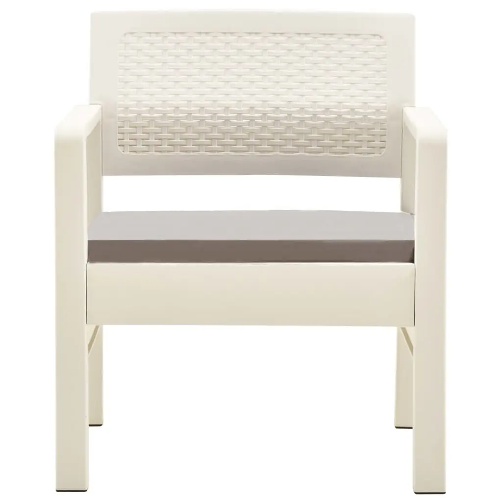 This 3-piece garden lounge set is a fantastic mix of style and comfort, perfect for enhancing your outdoor experience, whether you're chilling on a sunny afternoon or hosting a small get-together. With its clean white color and sleek lines, it looks great and is made from high-quality synthetic plastic and fabric, ensuring it not only looks good but can handle outdoor use. Durability: The materials used in this lounge set are chosen for their longevity and weather resistance, so you can enjoy your outdoor space without worrying about wear and tear.Comfortable Seating: Outdoor cushions add comfort, and they’re designed with zips for easy cleaning. This keeps your lounging experience enjoyable and maintenance simple.Compact Size: This set fits perfectly into various outdoor spaces, whether you’re lounging by the pool, enjoying the garden, or relaxing on a terrace.Easy to Assemble: Quick assembly that requires just one person and minimal tools means you can start using it in no time.Contemporary Aesthetic: With a modern flat armrest design and smooth texture, it enhances your patio while fitting in perfectly with contemporary decor.