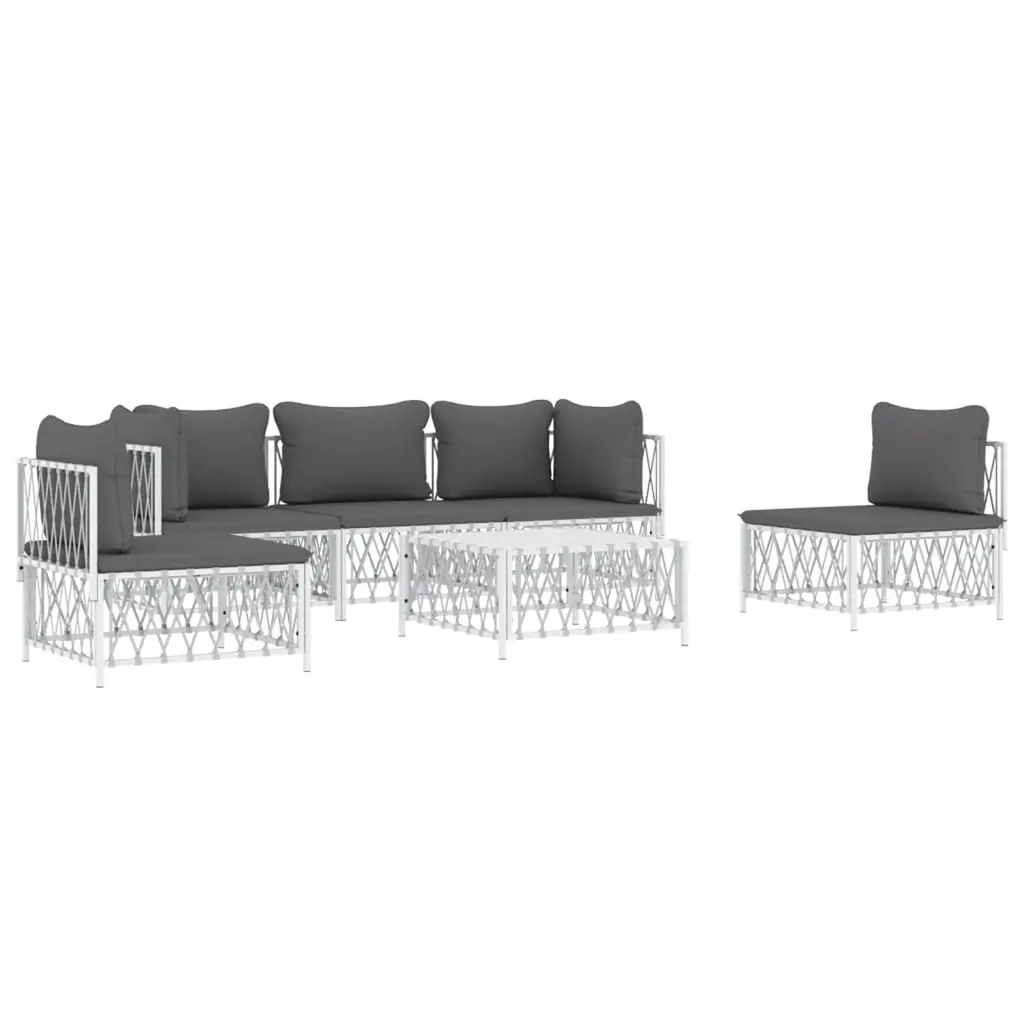 This 6-Piece Modular Garden Lounge Set mixes practicality and style, making it a top choice for any outdoor area. With its snazzy white finish and dark grey cushions, it's not just about looks – it’s comfy too, perfect for hanging out with family and friends or for fun outdoor parties. Modular Design: This lounge set's modular setup lets you adjust it to fit your space just right. Rearranging the seating for different layouts is super easy, adding versatility for when you’re having a garden party or a quiet night in. Durable Construction: Built with tough powder-coated steel frames, this garden set can take on the weather. The finish keeps it safe from rust and fading, so your furniture stays looking great for years with minimal fuss. Weather-Resistant Cushions: The set features comfy cushions made from weather-proof fabric, ensuring a cozy sit whether lounging on a hot summer day or a brisk spring afternoon. Plus, their removable zip covers make cleaning a breeze, keeping your outdoor setup looking sharp. Elegant Style: The modern design is all about clean lines and minimal extras, making this lounge set fit in with many outdoor styles. Its sleek rectangular shape becomes a focal point in gardens, balconies, or patios, turning your outdoor area into a stylish haven. Ample Seating: This lounge set can comfortably fit up to 6 people, making it perfect for gatherings where everyone can kick back and enjoy. With generous sizing for both small and large cushions, you’ll get the best of both comfort and functionality.