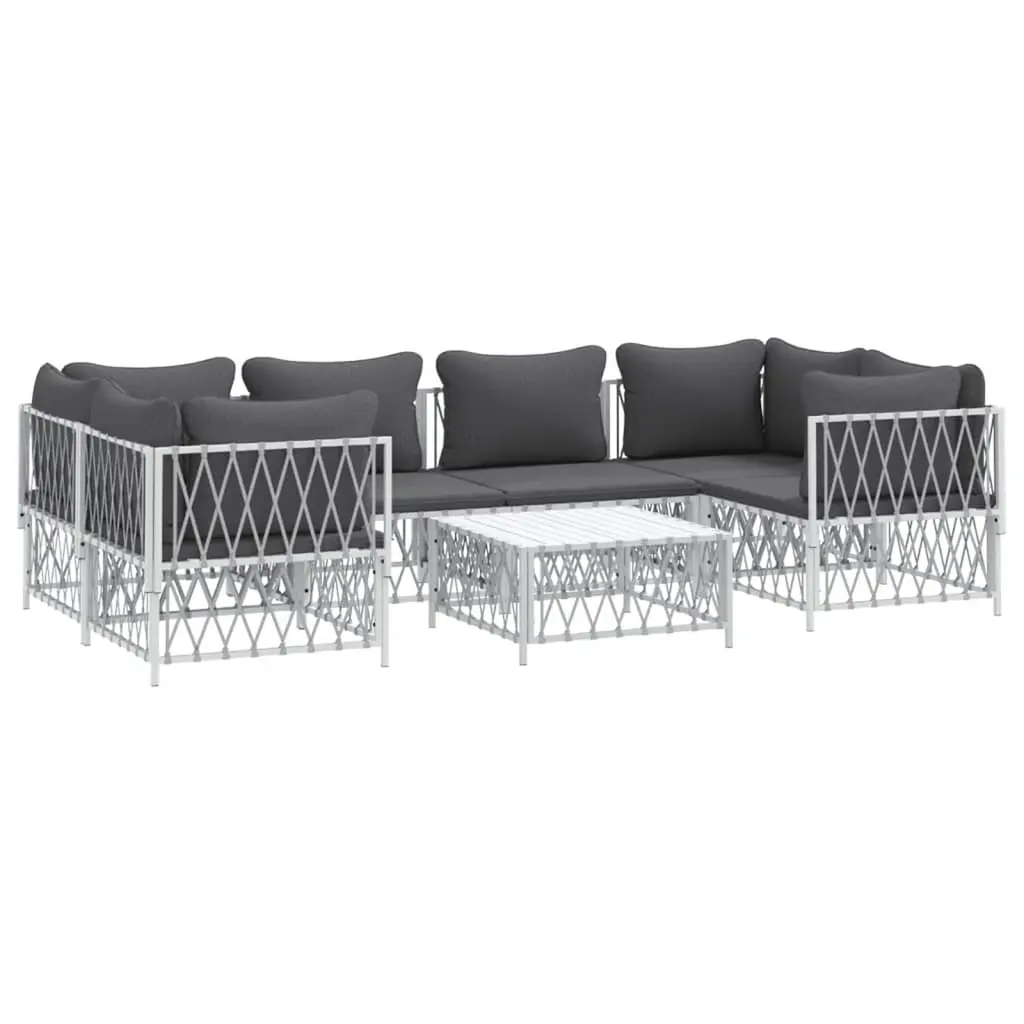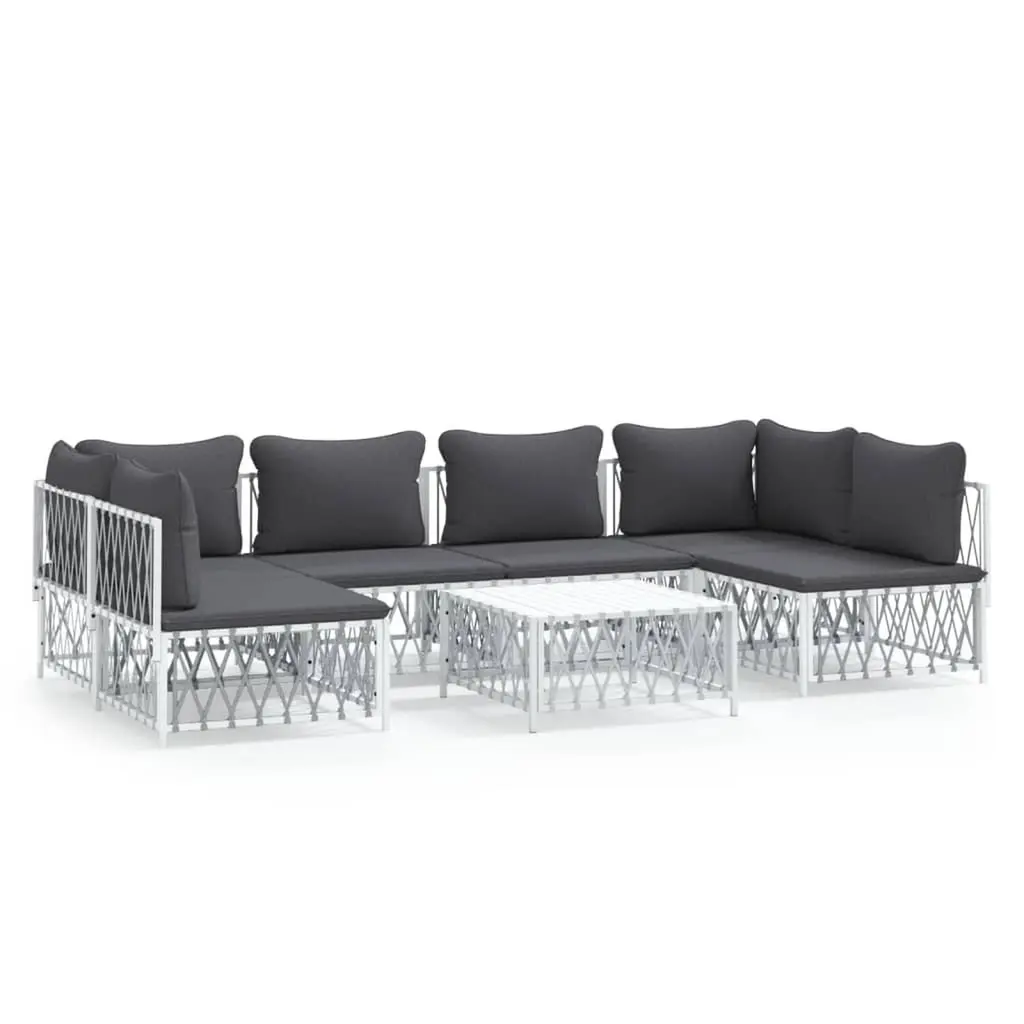 This 7-Piece Garden Lounge Set gives you a fantastic and comfy seating solution for outdoor areas. With its sleek white powder-coated steel frames and roomy seating, it's perfect for socializing in your garden, patio, or balcony with friends or family, letting you kick back in style. Modular Design: You can easily rearrange the pieces of this lounge set to fit your space. It accommodates different layouts for gatherings or lounging.Durable Material: Made from high-quality, UV and water-resistant materials, this set holds up outdoors for ages. The powder-coated steel prevents rust and remains stable year-round.Comfortable Cushions: Soft, removable cushions are included, making lounging a real treat. The textile fabric ensures your outdoor hangout is super comfy.Stylish Aesthetic: With its modern, minimalist vibe, this garden lounge set looks great in your outdoor decor. Its clean lines and bright colors create a friendly spot for family and friends.Easy Maintenance: This lounge set keeps upkeep simple. Just wipe it down with a damp cloth, and bring the cushions inside during bad weather to keep them looking good.