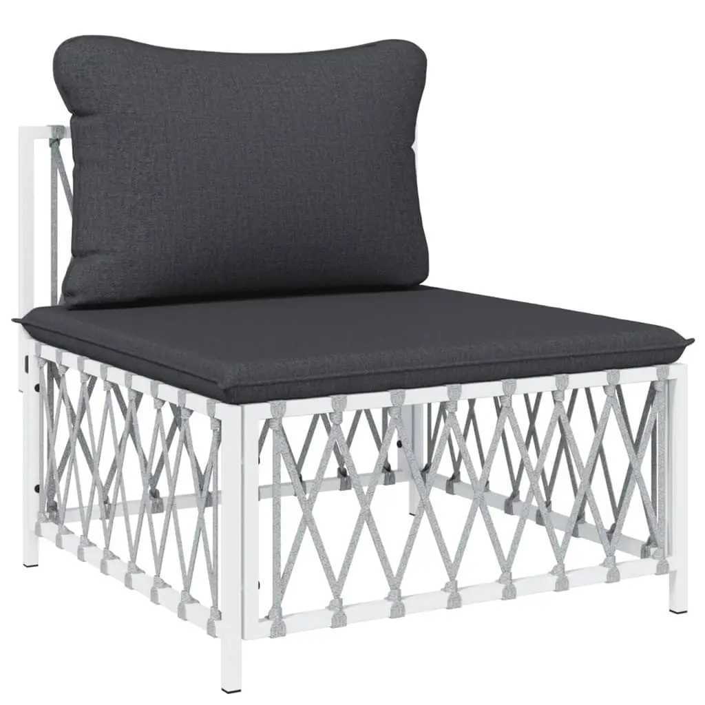 This modular garden lounge set creates a fab chill spot outdoors, comfy for up to six. With its sleek modern look in white and dark grey cushions, it makes any patio or balcony feel inviting. The modular design lets you set things up any way you want, easily adjusting the seating for different needs or gatherings. The strong powder-coated steel frame is built for outdoor weather, while being lightweight for easier movement. Every piece is made to last, ensuring reliable support. The soft cushions included not only add a pop of color but also make lounging super comfy. Each cushion has a removable cover, making post-party clean-up a breeze. This set is perfect for any outdoor area, from small balconies to large patios, making it ideal for relaxing with friends. Whether you're having a casual afternoon or evening drinks, its flexible design matches all occasions. The stylish rectangular shape and generous space means it can fit quite a few guests while keeping the vibe social, so everyone can chill together.