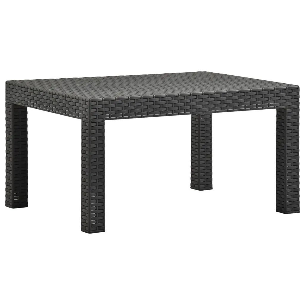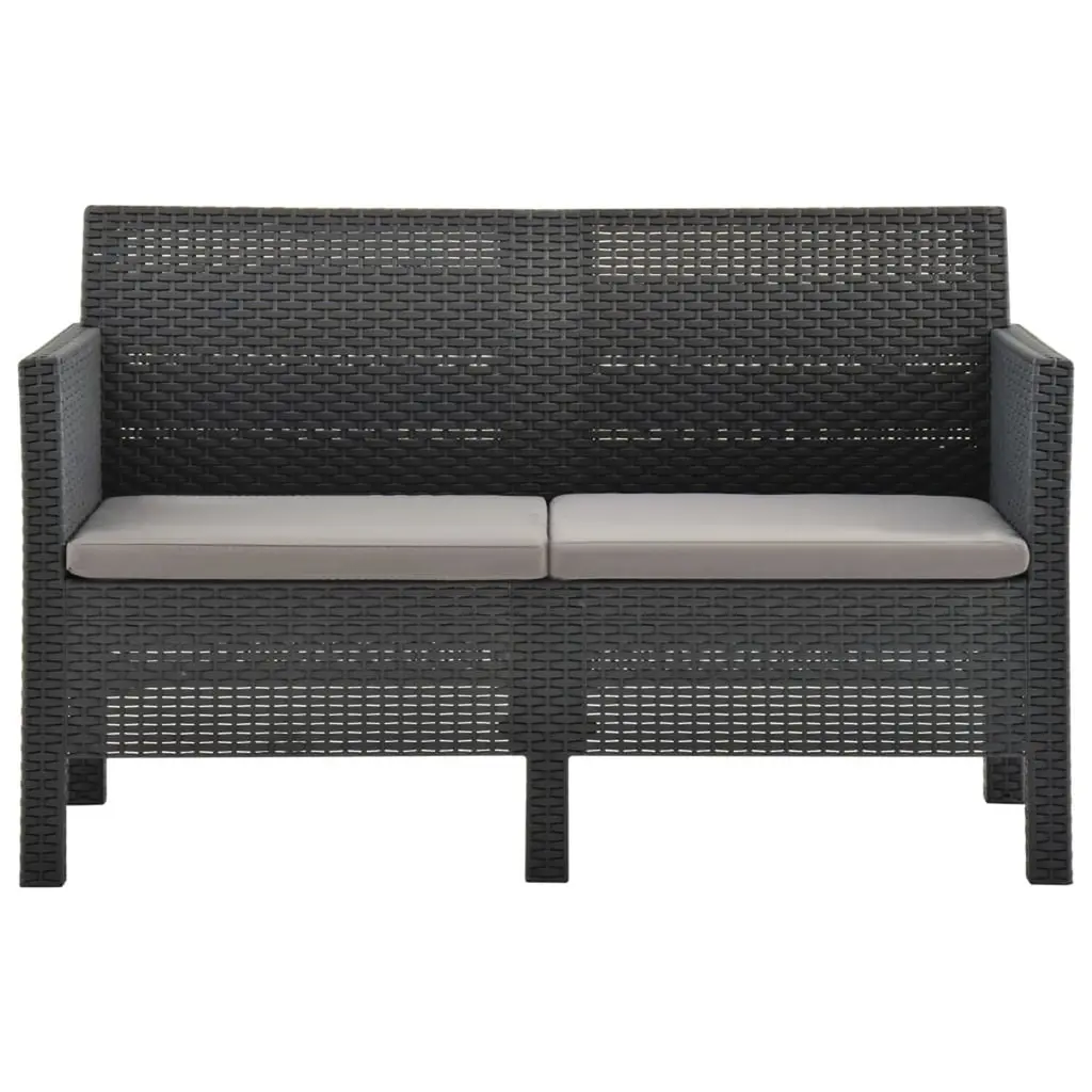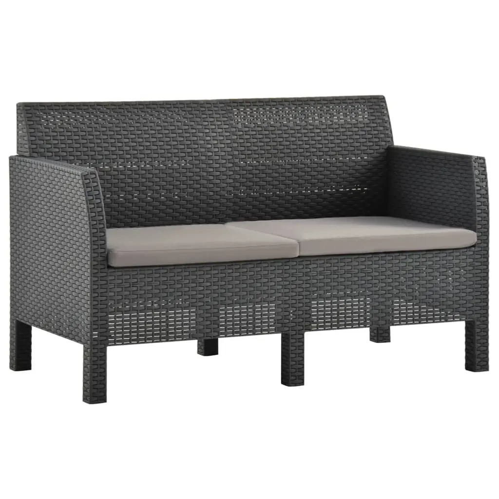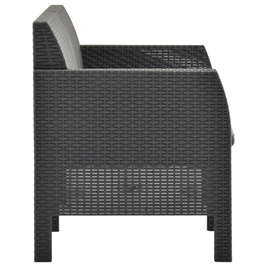 This 2-piece garden lounge set comes with a stylish 2-seater sofa and a matching table, making it perfect for your outdoor chill sessions. Its modern anthracite finish adds a touch of elegance, perfectly suited for balconies, terraces, or patios, blending comfort and style in any outdoor area. Sturdy Build: Made from high-quality polypropylene, this lounge set is built to last against bad weather. The synthetic material boosts its durability while giving it a classy rattan look.Comfy Seating: The sofa features soft cushions made from lightweight polyester fiberfill, ensuring a snug and enjoyable seating experience. Perfect for lounging, reading, or catching up with pals outside.Easy to Maintain: With removable and machine-washable cushion covers, keeping your lounge set clean is super easy. Just unzip and toss in the wash for hassle-free upkeep.Thoughtful Design: The rectangular table is just right for snacks and drinks, making it easy to entertain guests. Its stylish texture adds to the look while being super practical.Outdoor Ready: Built specifically for outdoor fun, the lounge set's made from UV-resistant materials, ensuring it stays strong against the sun without fading or breaking down.