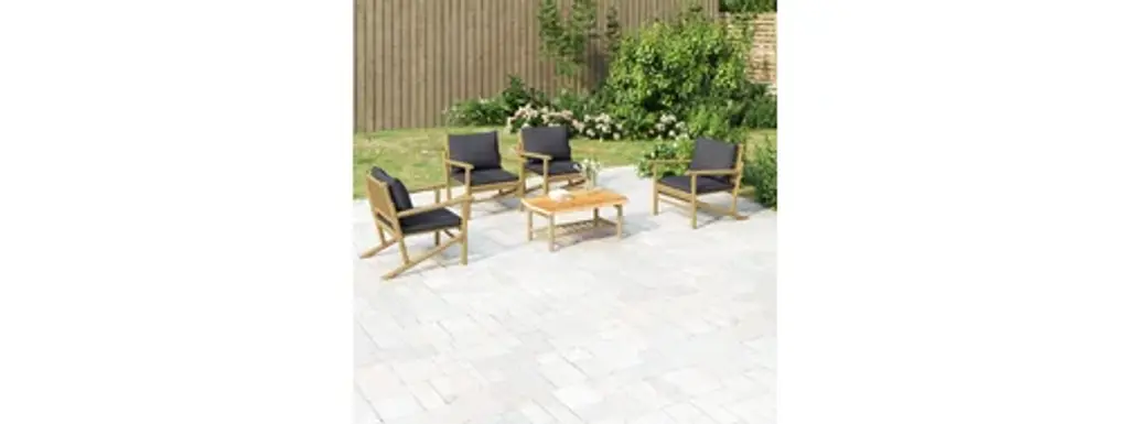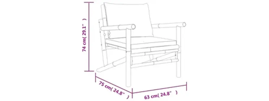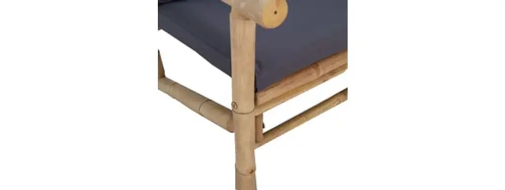 Enjoy a cup of coffee or tea in your outdoor space with this rustic bamboo patio lounge set!Bamboo set: Bamboo is known for its flexibility and hardness. Bamboo furniture is a good option when you want strong outdoor furniture made from natural materials.Comfortable seat experience: The backrest and armrests add extra seating comfort for the garden sofa set. Also, the soft seat and back cushions provide comfort for your sitting time.Practical table: The sturdy table is perfect for placing meals, drinks, and other decorative items.Modular design: The lounge set is flexible and easy to move around, so you can combine it with other modular segments in the webshop to create your own personal outdoor lounge set configurations!Note:To make sure your outdoor furniture stays beautiful, we recommend protecting it with a waterproof cover.Coffee Table:Material: Bamboo with a natural finishDimensions: 35.4" x 21.7" x 14.6" (L x W x H)Garden chair:Material: Bamboo with a natural finishDimensions: 24.8" x 29.5" x 29.1" (W x D x H)Seat height from the ground: 11.8"Armrest height from the ground: 21.7"Maximum load capacity (per seat): 242.5 lbCushion:Cushion color: Dark grayCushion cover material: Fabric (100% polyester)Seat cushion filling material: FoamBack cushion filling material: PP cottonSeat cushion dimensions: 20.9" x 20.9" x 2.8" (W x D x T)Back cushion dimensions: 22.8" x 18.9" x 3.1" (W x D x T)Assembly required: YesDelivery contains:1 x Coffee table4 x Garden chair4 x Seat cushion4 x Back cushion