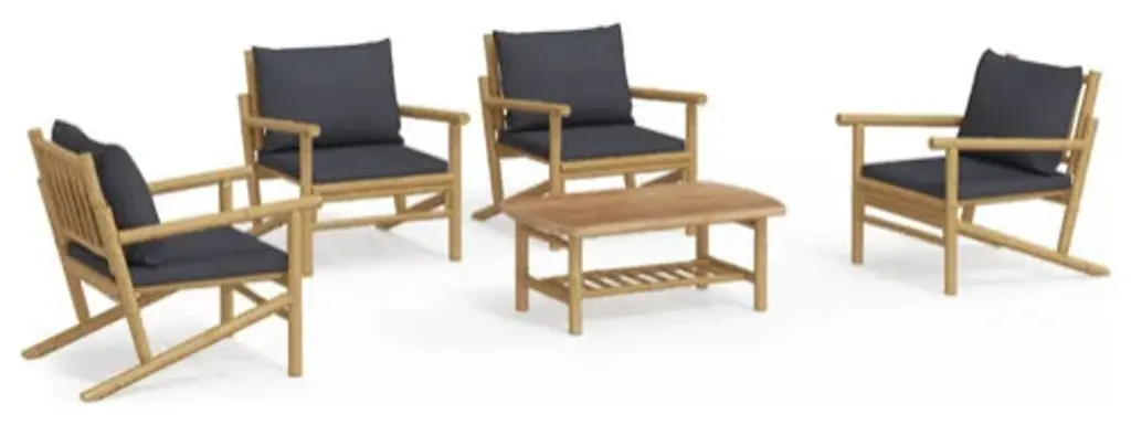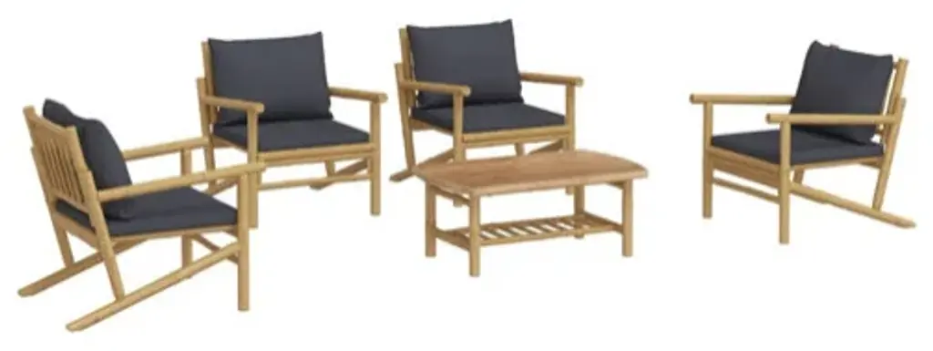 Vidaxl Patio Furniture Set 5 Piece Lounge Set With Dark Gray Cushions Bamboo