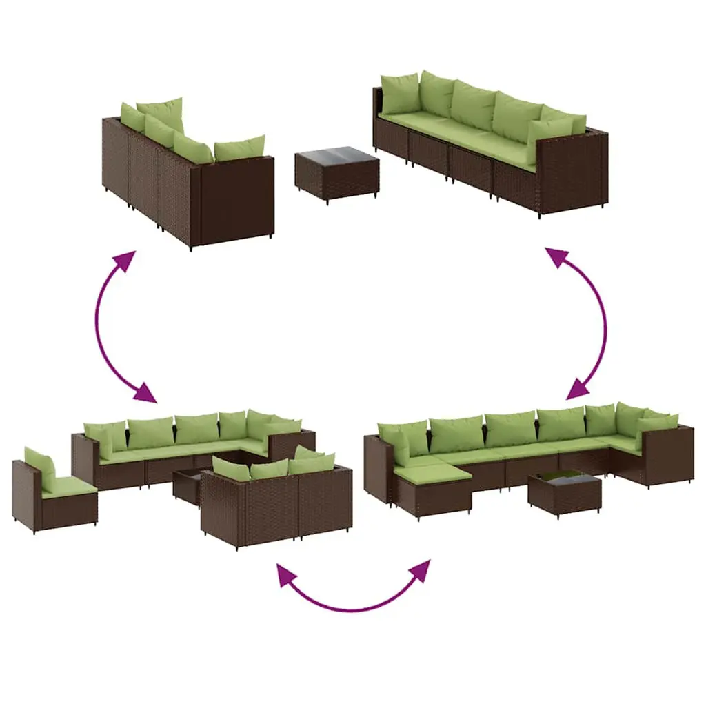 Vidaxl Patio Lounge Set Brown Pe Rattan Large Modular