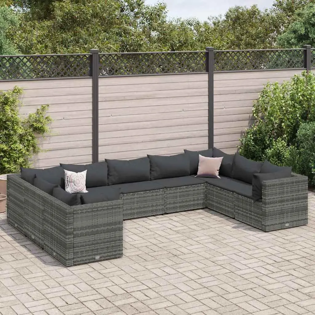 This 9-piece garden lounge set mixes style and comfort, made from sturdy poly rattan and topped with soft cushions. It's designed for outdoor fun, adding a modern look to balconies and sunrooms while being super flexible for your arrangements—perfect for social get-togethers or chill afternoons. Adjustable Features: Easily move the armrests and feet to suit your comfort.Modular Design: Adjust the layout of this set to fit any patio or garden.Weather Resistant: Made from UV-resistant materials for durability in the sun.Comfortable Cushions: The thick cushions offer extra comfort for long sitting.Easy Maintenance: Easy to clean with warm water, no harsh chemicals needed.