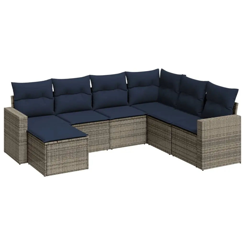 This 7-piece garden lounge set is a fantastic blend of modern style and outdoor usability, making your patio or balcony comfy. With a sleek grey design and cozy cushions, this lounge set brings a touch of class to your outdoor hangouts. Modular Design: This lounge set's flexible layout lets you arrange it however you want, making it perfect for small balconies and large patios. Weather-resistant Material: Made from UV-resistant PE rattan, this set is tough against the elements, allowing you and your guests to enjoy it all year round. Removable Cushions: The cushions come with hidden zippers for easy removal and cleaning, keeping your lounge set looking fresh. Sturdy Frame: Built to support up to 242.5 lbs per seat, the powder-coated steel frame ensures strong and stable seating for all your outdoor fun. Lots of Seating: This lounge set comfortably fits 6 adults, perfect for having friends over or enjoying a quiet afternoon outdoors.