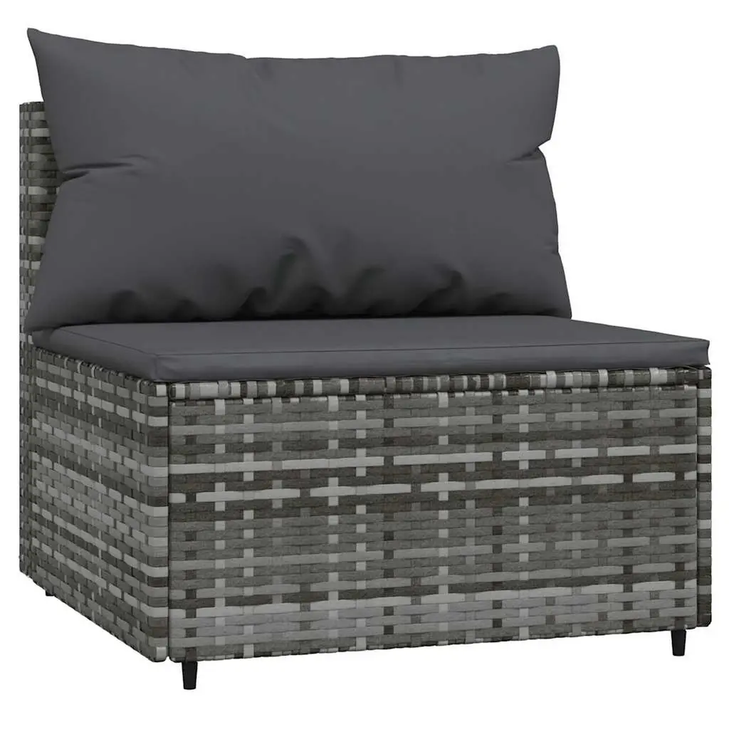 This Outdoor Sectional Sofa Set gives you ample seating, perfect for chilling out on summer evenings in your garden or patio. The cool grey color with smart anthracite cushions adds a modern touch, ensuring comfort and making it a must-have for outdoor gatherings with family and friends. Modular Freedom: The modular layout opens up loads of configuration options, letting you fit it to your space and needs while crafting the perfect lounging area. Make a snug nook or a spacious setup, all while reflecting your style and comfort tastes. Robust Construction: Made from top-quality PE rattan and powder-coated steel, this sofa set is tough enough for outdoor living. Its solid frame and resilient materials promise to last through different seasons. Cushioned Comfort: Every seat comes with cozy, weather-resistant cushions that enhance your outdoor time. These cushions are not just comfy but also have removable covers, making it easy to keep everything looking fresh. Stylish Aesthetic: The sleek grey look and modern design fit right in with any outdoor decor, adding a sophisticated vibe to your space. This sofa set jazzes up patios, gardens, or balconies, making them feel like cozy retreats. Spacious Seating: Designed for up to five people, this sectional sofa set is perfect for hosting friends while giving plenty of space for relaxation. It’s great for family dinners or outdoor parties, inviting everyone to lounge comfortably.