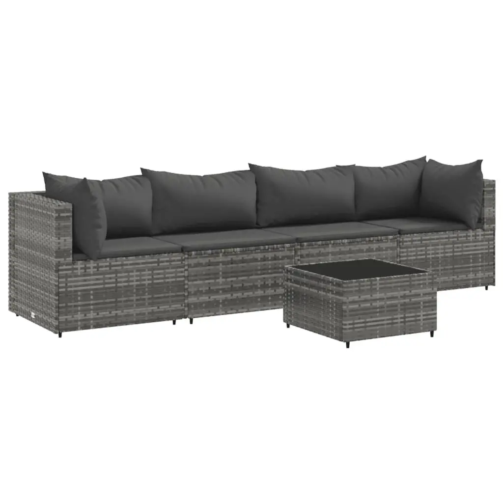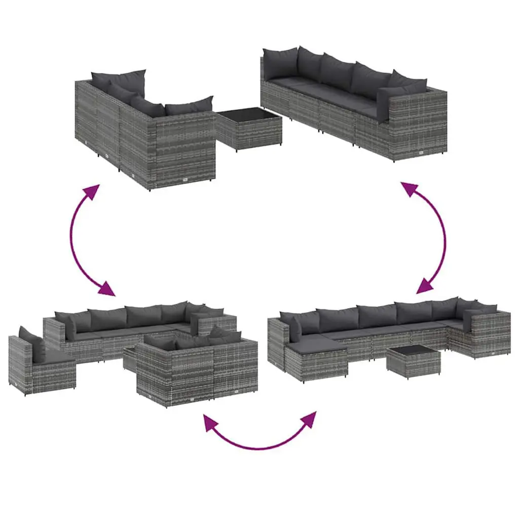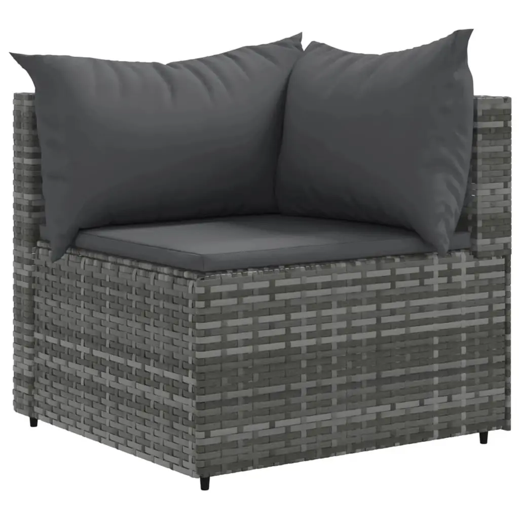 This 8 piece garden lounge set mixes comfort with style and is just right for kicking back outside. Made from poly rattan and featuring thick cushions, it invites you to unwind on terraces, patios, or balconies while adding a modern flair to your outdoor area. Modular Flexibility: The lounge set has a modular design, allowing you to rearrange it to suit your space and style, making get-togethers a breeze.Weather-Resistant Materials: Made with UV-proof synthetic materials, this set can take on the elements while keeping its charm, so you can enjoy your outdoor events no matter the weather.Generous Cushioning: Each piece comes with plush cushions that are removable and washable, providing excellent comfort and ease of cleaning, meaning your seating area will always look top-notch.Elegant Style: The trendy gray color and sleek lines give a modern look that fits nicely with various outdoor styles, adding a touch of class to any garden or backyard setup.Complete Seating Solution: This set fits up to 8 people comfortably, making it a great pick for larger gatherings, outdoor parties, or those relaxed evenings under the stars with your family and friends.
