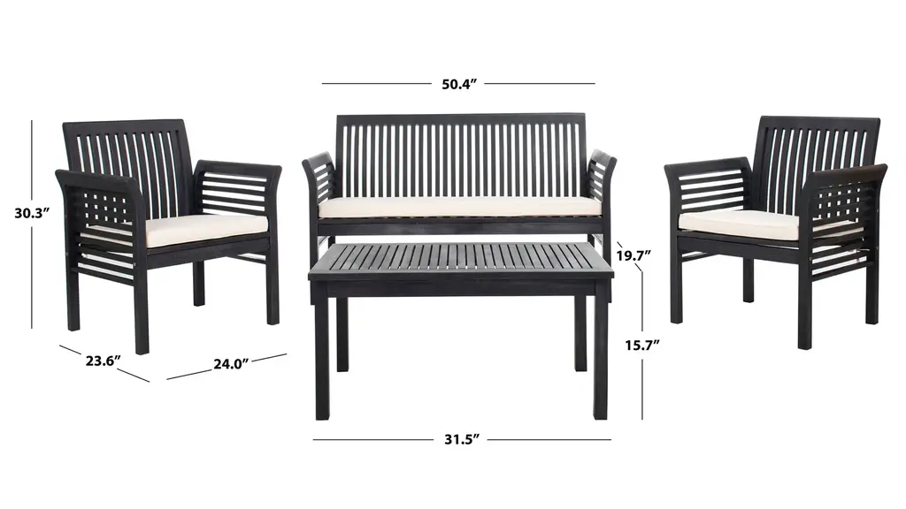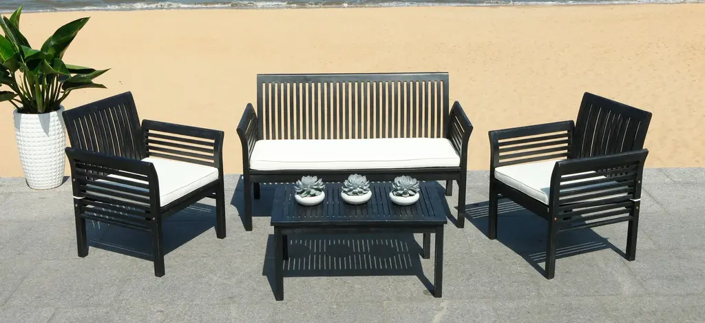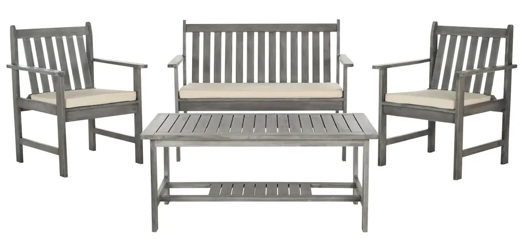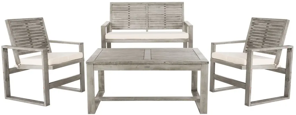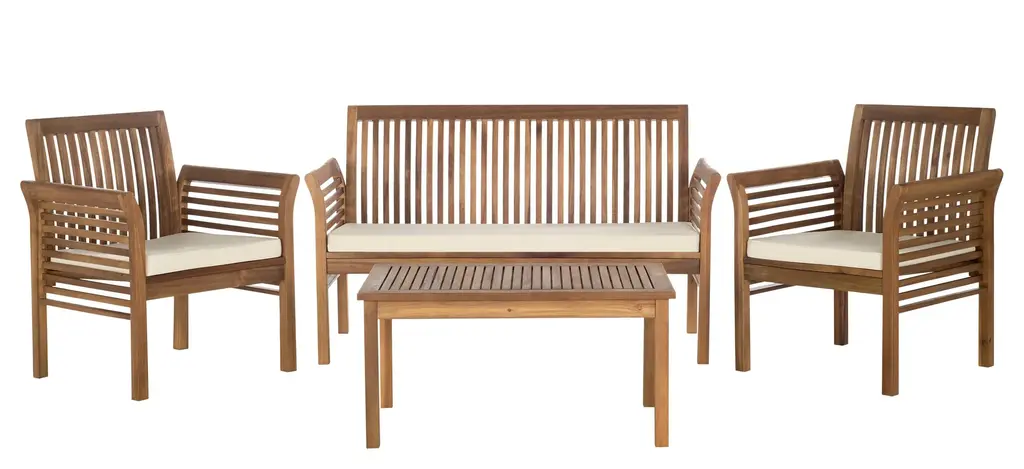 Clean and contemporary, the Vlad 4-pc. Patio Set recalls the simplicity of Danish furniture design. Masterfully crafted of sustainable acacia wood in a natural finish, the set comes with all weather seat cushions for easy care comfort.