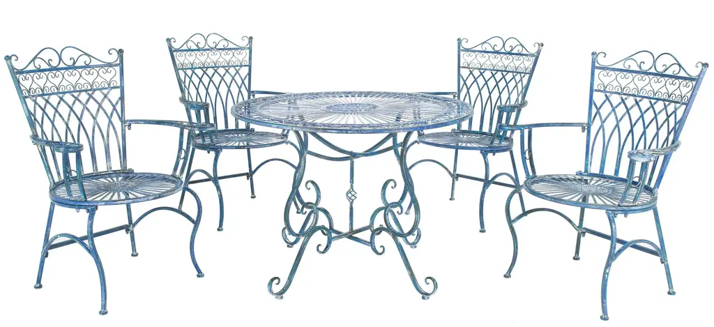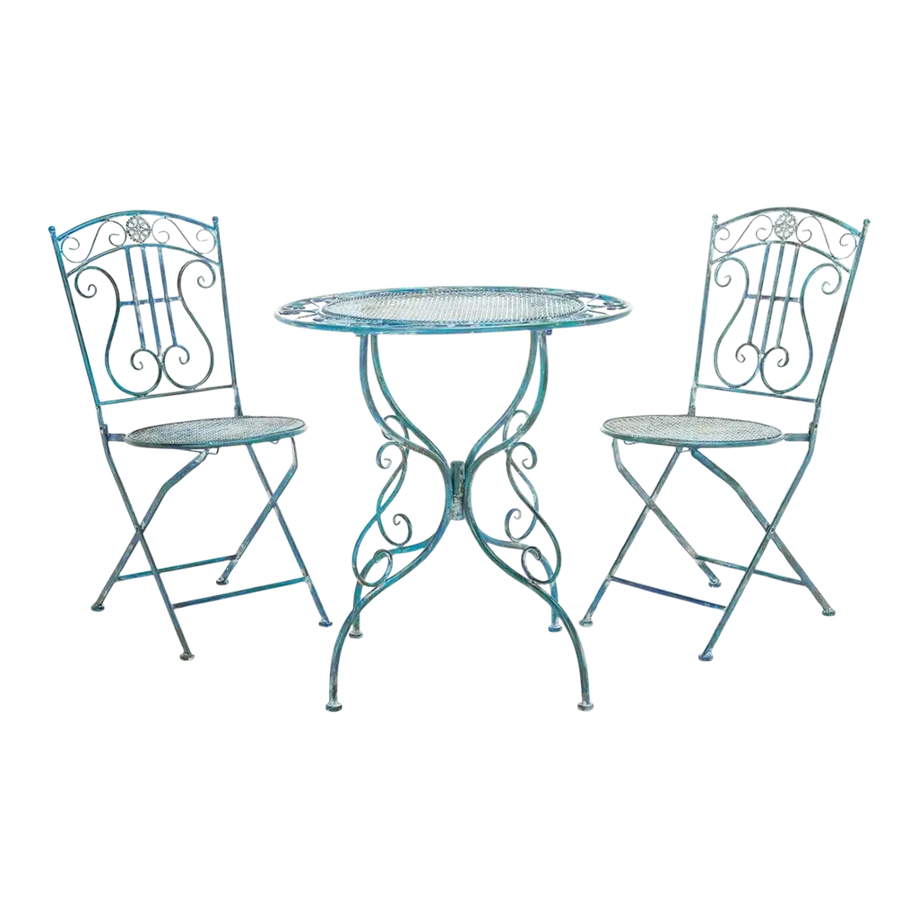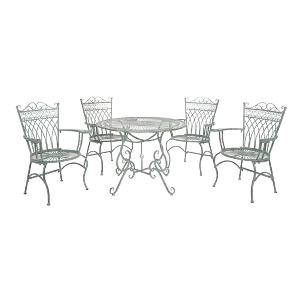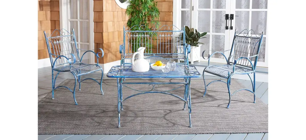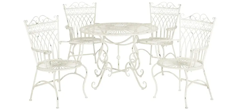 Emanating turn of the century charm, this Werner 4-pc. Patio Set gives any outdoor area a classic, romantic ambiance. Crafted of intricately worked iron in an antique finish, Werner's Victorian inspired scroll details transform your patio into an elegant entertainment space. Includes a bench, two chairs, and coffee table.