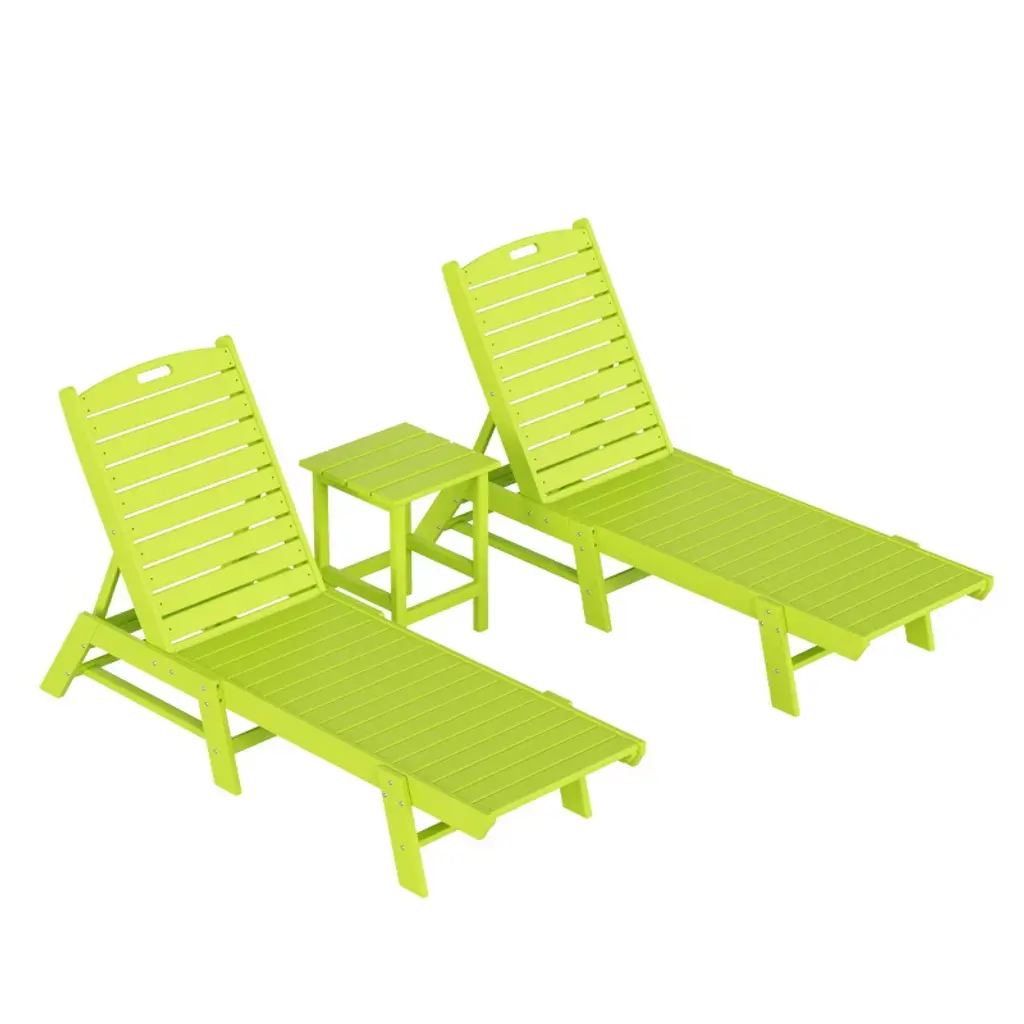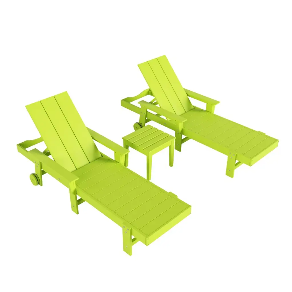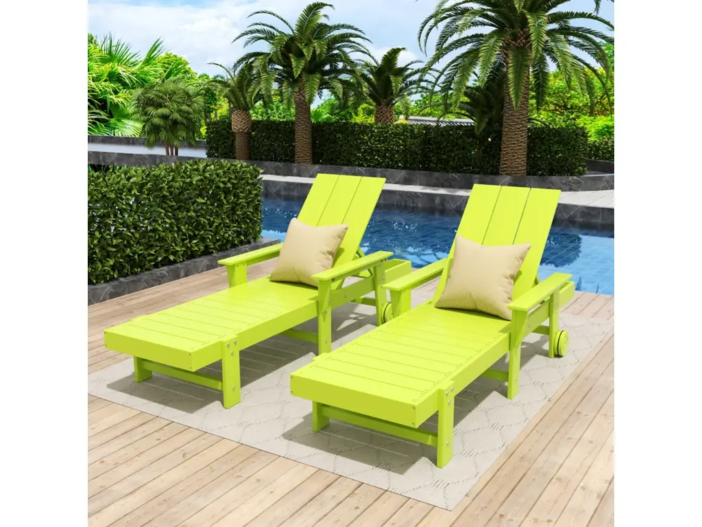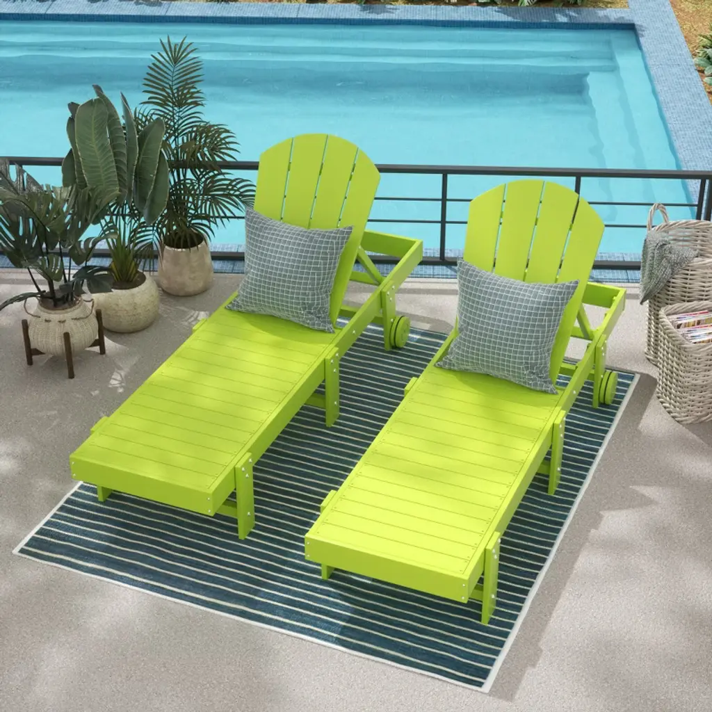 Westintrends 2Pc Adjustable Reclining Adirondack Outdoor Pool Chaise Lounge Set, Lime Green