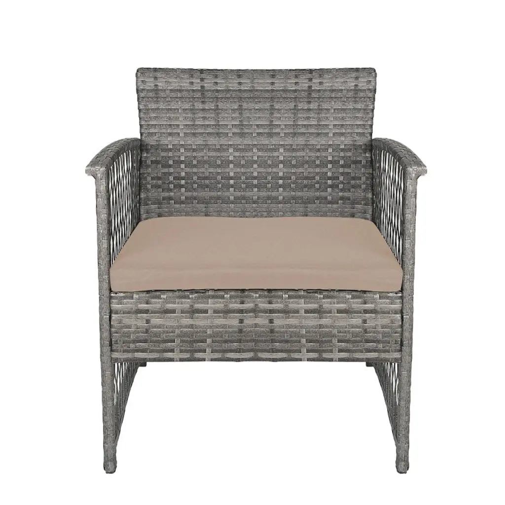 This lovely 3-piece outdoor patio set will help you create the tranquil outdoor seating area you've been dreaming of. Made of a strong steel frame that can support up to 300 lbs and is wrapped in high-quality all-weather PE rattan wicker, making the set strong and durable. The sofa sets and cushions are protected from fading by a weather-and UV-resistant coating, maintaining their perfect appearance all year long. This outdoor patio conversation set is ideal for promoting a peaceful space and making your backyard stand out.While we strive to accurately represent product colors, please be aware that actual colors may vary slightly due to individual screen settings and lighting conditions. FeaturesSet includes two (2) arm chairs and one (1) side tablePE rattan wicker adds strength and durabilityPolyester-blended cushion covers maintain their shape and resistant to fadingSteel frame furniture adds durability and strength to the setUV resistant coating prevents fading and weather resistant exposure helps against the elementsEach seat supports up to 300 lbsSimple and easy to assembleDetails:Product Type: Patio Conversation SetsWhat's Included: (2) Chair; (1) Side TableChairDimensions: 24.75" W x 26" D x 30.25" HWeight: 37.5 lbs.Seat Width: 19"Seat Depth: 19"Seat Height: 14.25"Weight Capacity: 330 lbs.Seat Width: 19"Seat Depth: 19"Seat Height: 14.25"Side TableDimensions: 17.5" W x 17.5" D x 20" HWeight Capacity: 66 lbs.