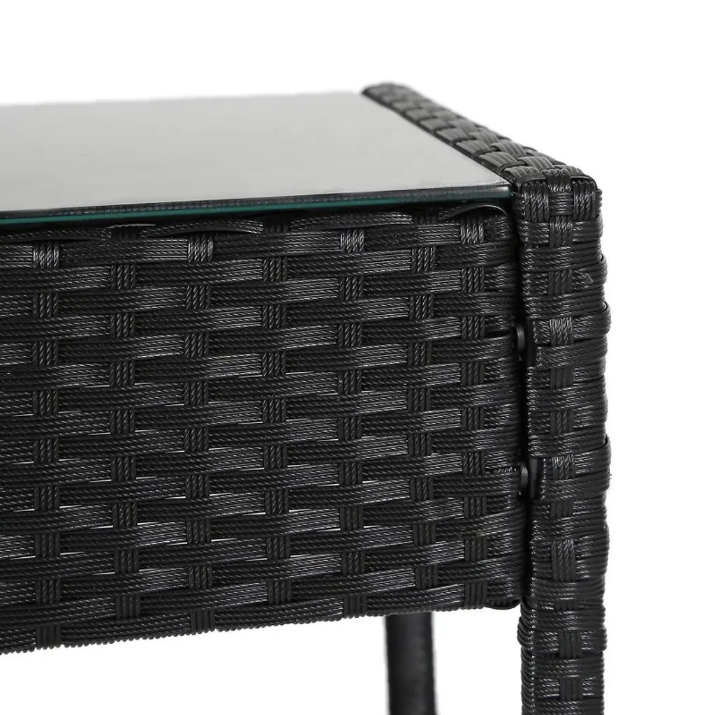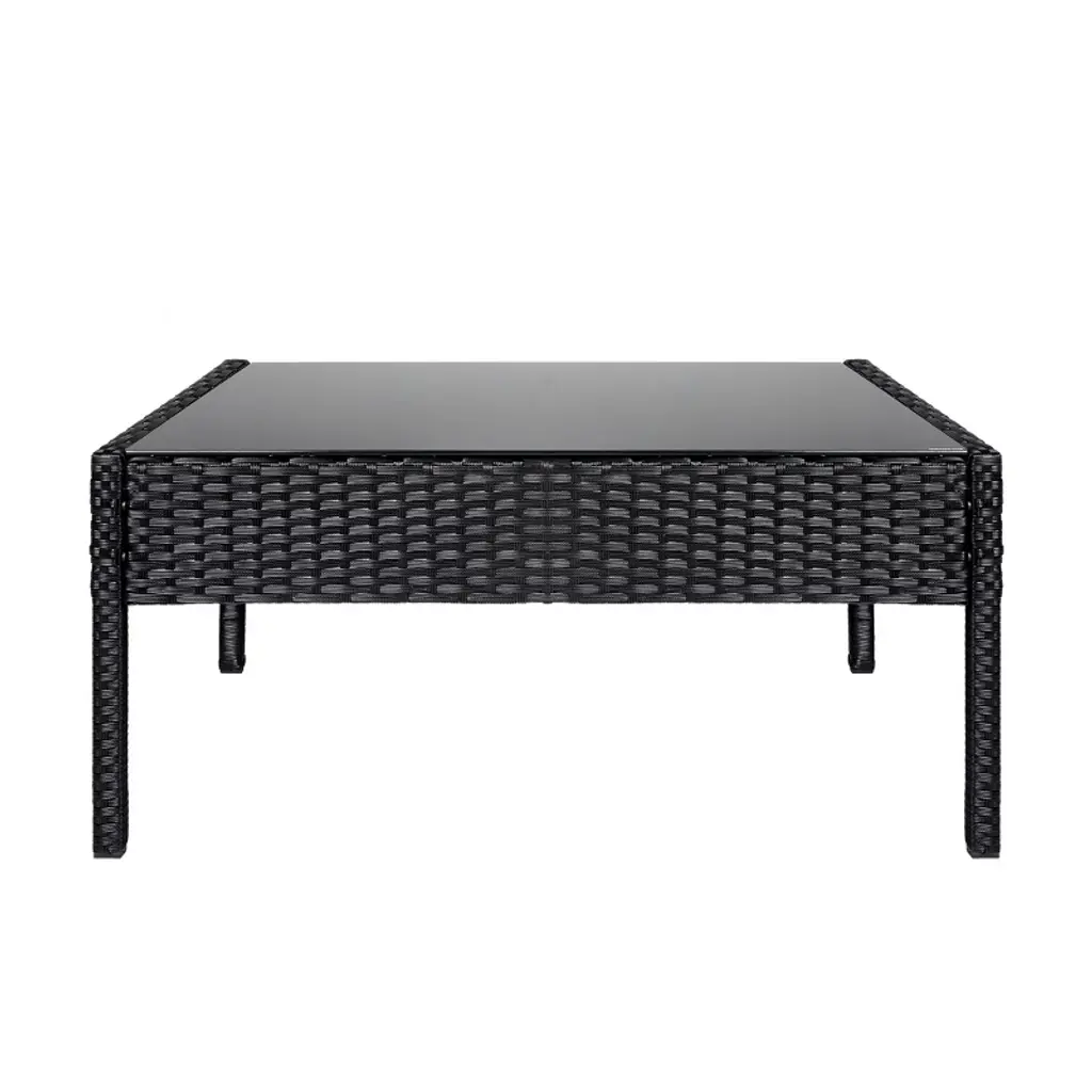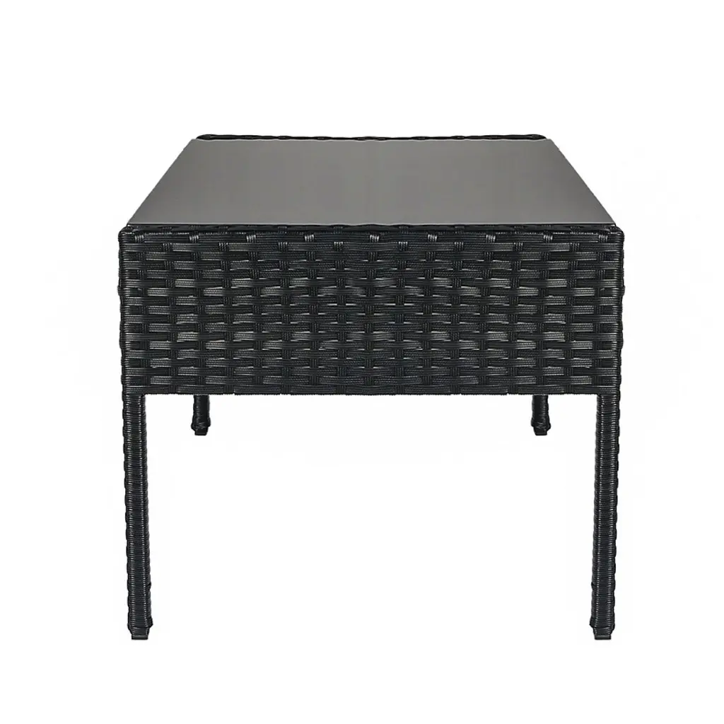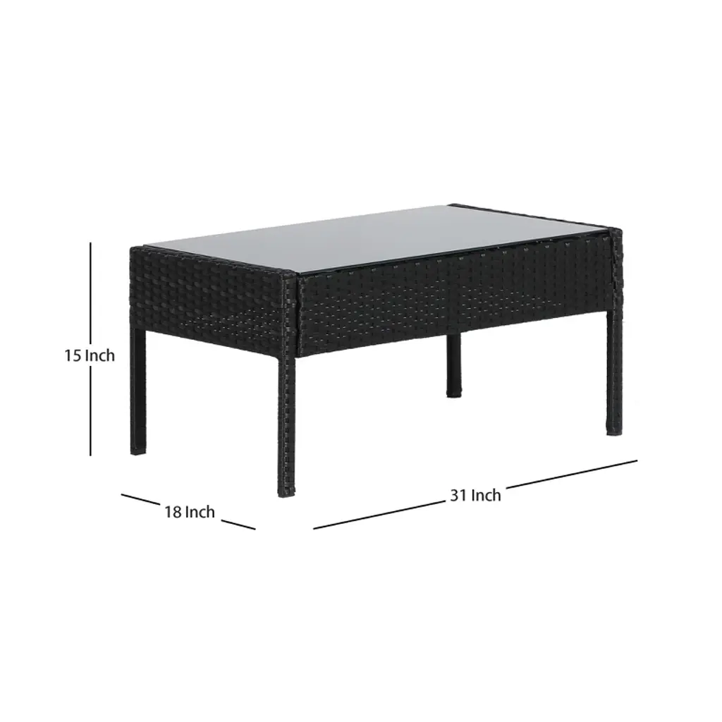 Turn your backyard into a place of style,comfort, and conversation space with this beautiful 4-piece woven rattan wicker and coffee table conversation set. The entire set is wrapped in a beautiful black woven rattan wicker that is made up of PE material that adds durability and strength to the set and with a UV and weather resistant coating that prevents fading and keeps the set in prime condition. The beige padded cushion covers are made of a polyester blend that is both an all-weather fabric and fade resistant, so they keep your furniture looking good all year long. This is the perfect set to make your backyard the place to be.While we strive to accurately represent product colors, please be aware that actual colors may vary slightly due to individual screen settings and lighting conditions. FeaturesSet includes: One (1) sofa loveseat, Two (2) arm chairs, and One (1) coffee tableDurable PE resin rattan wickerFade resistant polyester cushionsDurable steel frame supports up to 250lbs. per seatUV and weather resistant rattan wickerSimple and easy to assembleDetails:Product Type: Patio Conversation SetsWhat's Included: (2) Chair; (1) Loveseat; (1) TableChairDimensions: 24.75" W x 26" D x 30.25" HLoveseatDimensions: 44.5" W x 26" D x 30.25" HWeight: 71 lbs.Weight Capacity: 600 lbs.TableDimensions: 31" W x 18" D x 15" HWeight Capacity: 66 lbs.
