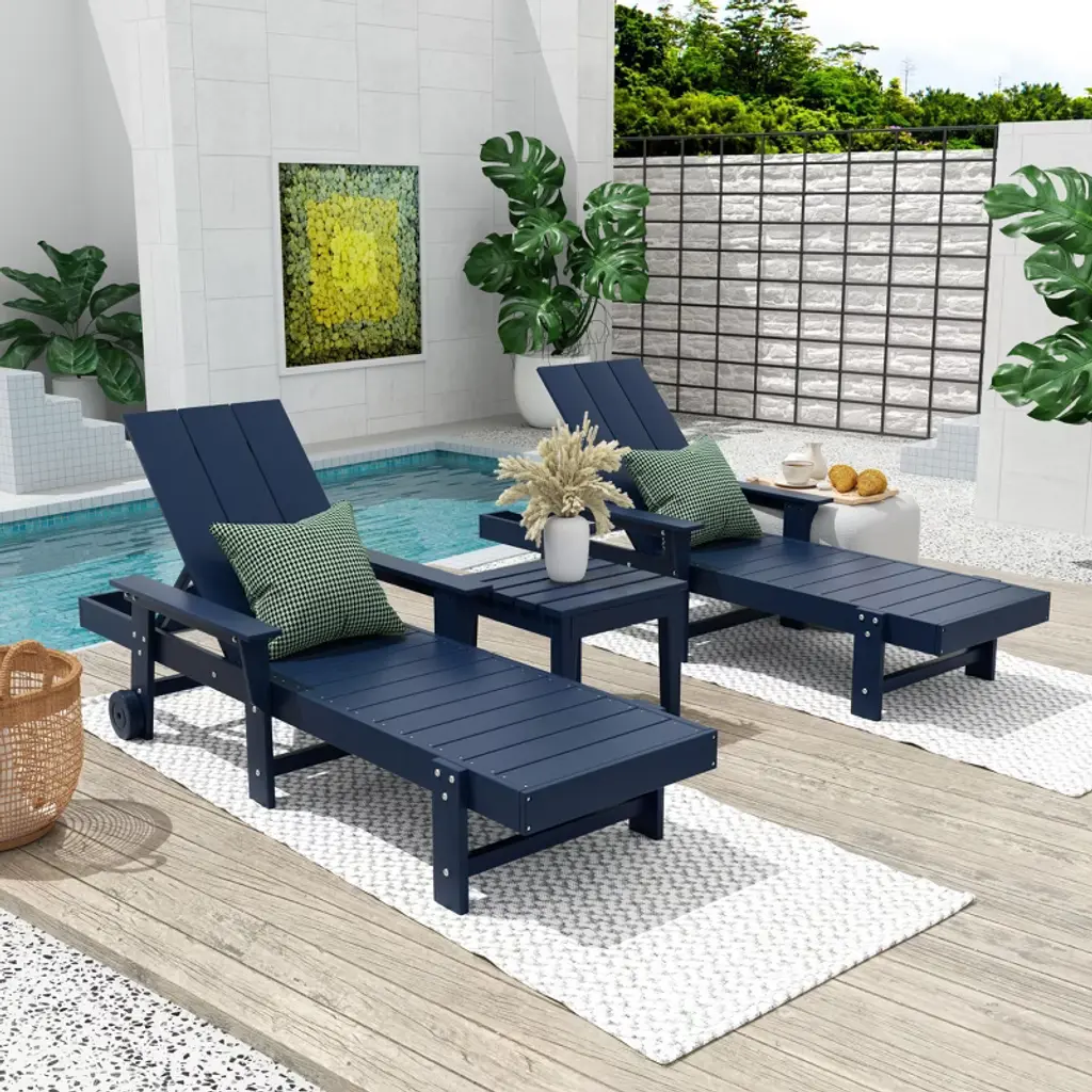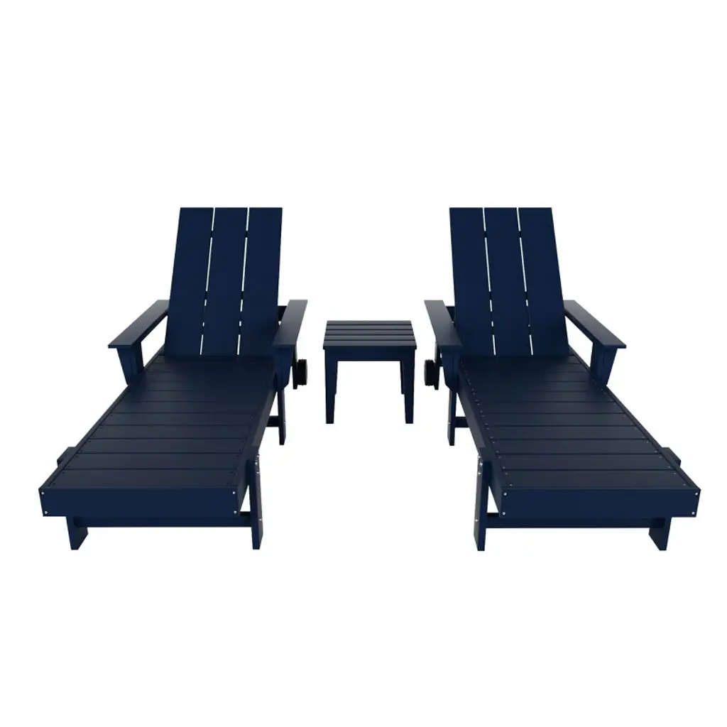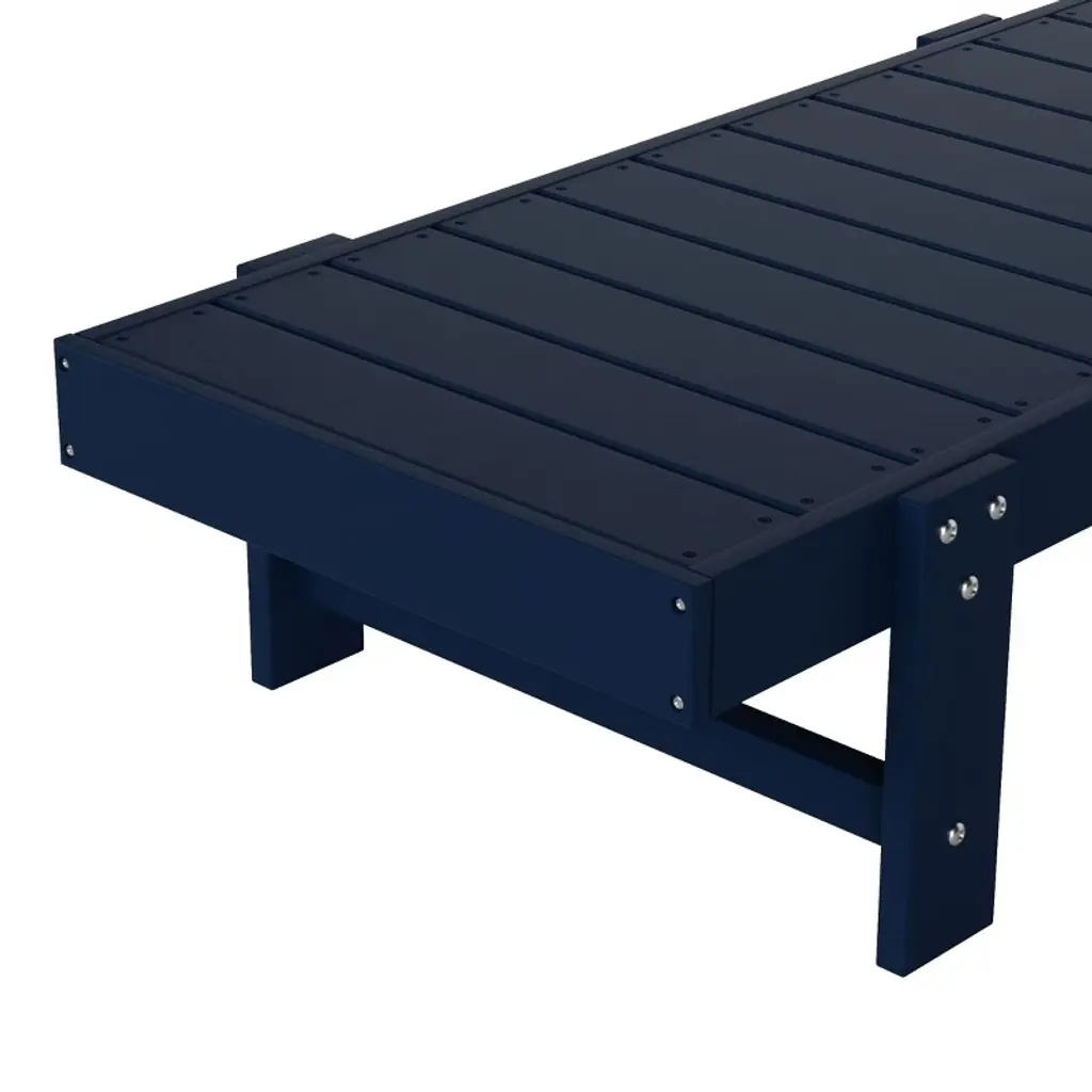 Westintrends Ashore Modern Poly Reclining Chaise Lounge Set With Side Table, Navy Blue