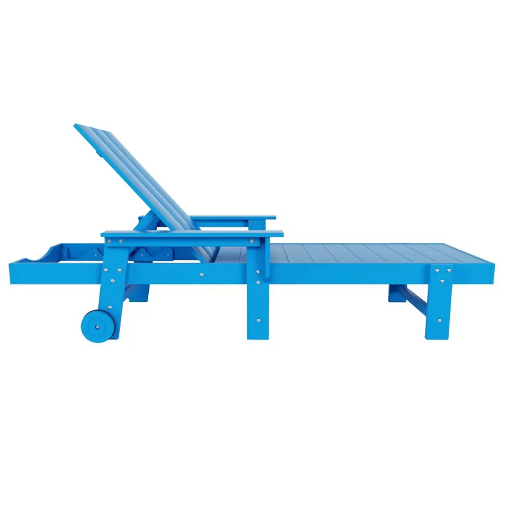 Westintrends Ashore Modern Poly Reclining Chaise Lounge Set With Side Table, Pacific Blue