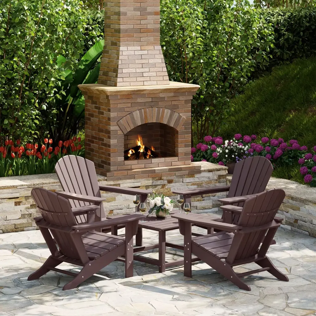 Westintrends Dylan 5-piece Outdoor Patio Hdpe Adirondack Chair With Square Coffee Table Conversation Set, Dark Brown