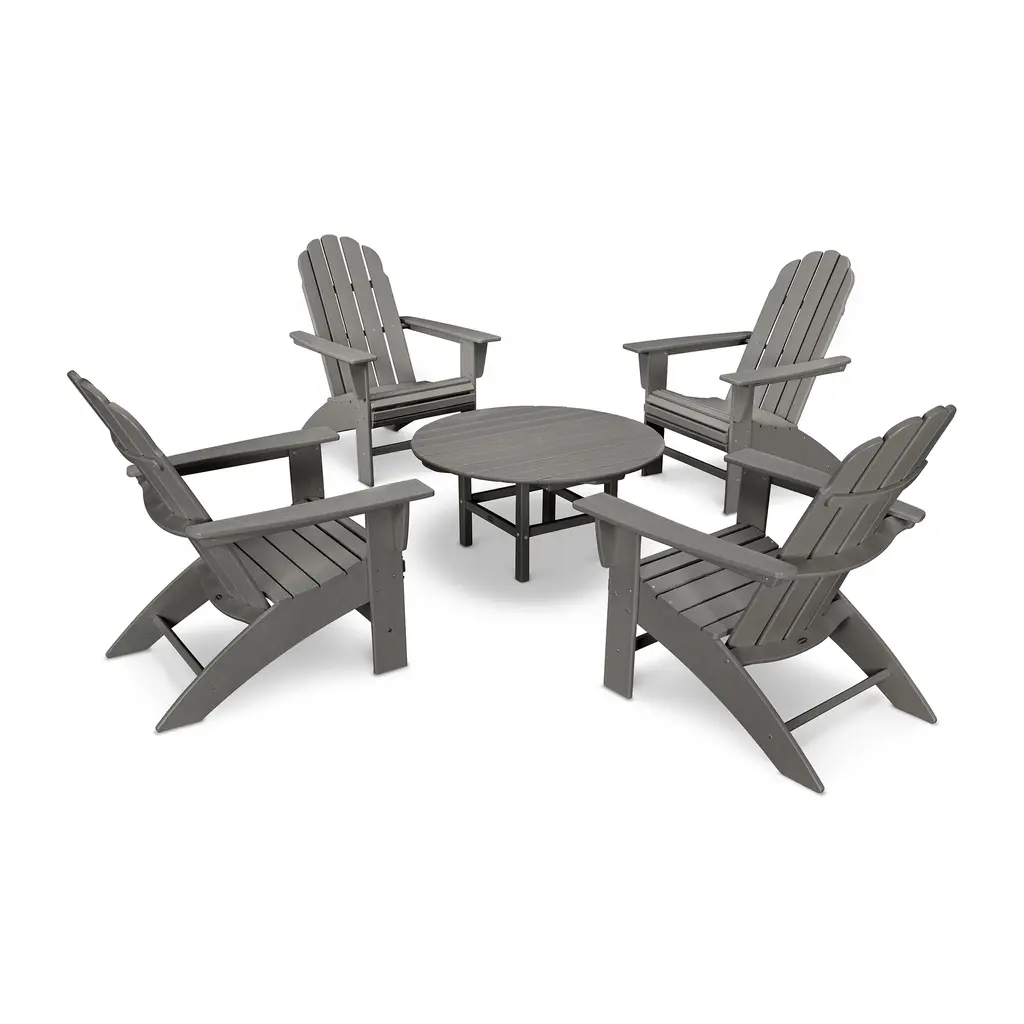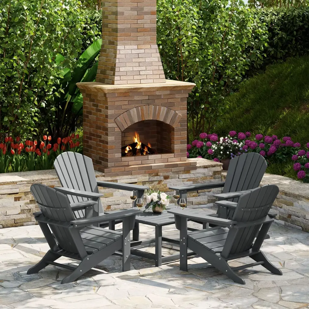 Westintrends Dylan 5-piece Outdoor Patio Hdpe Adirondack Chair With Square Coffee Table Conversation Set, Gray