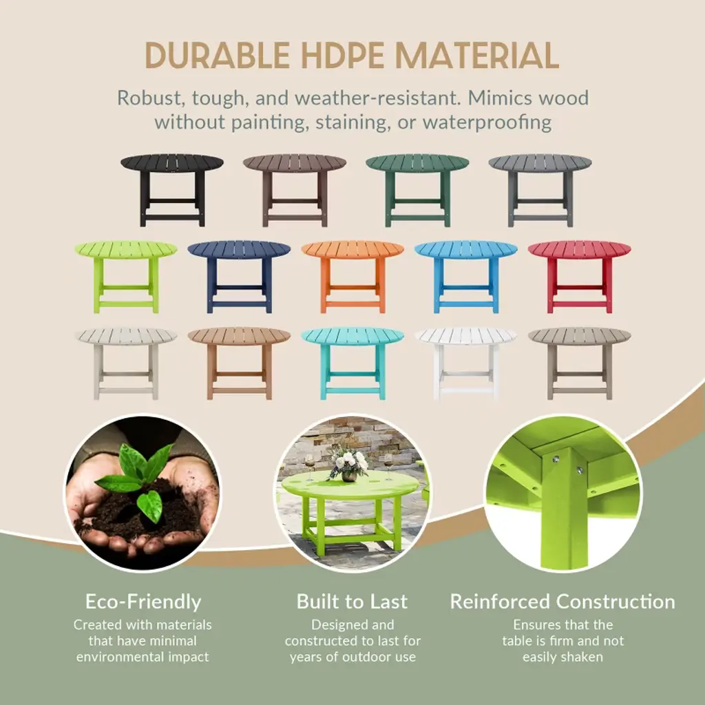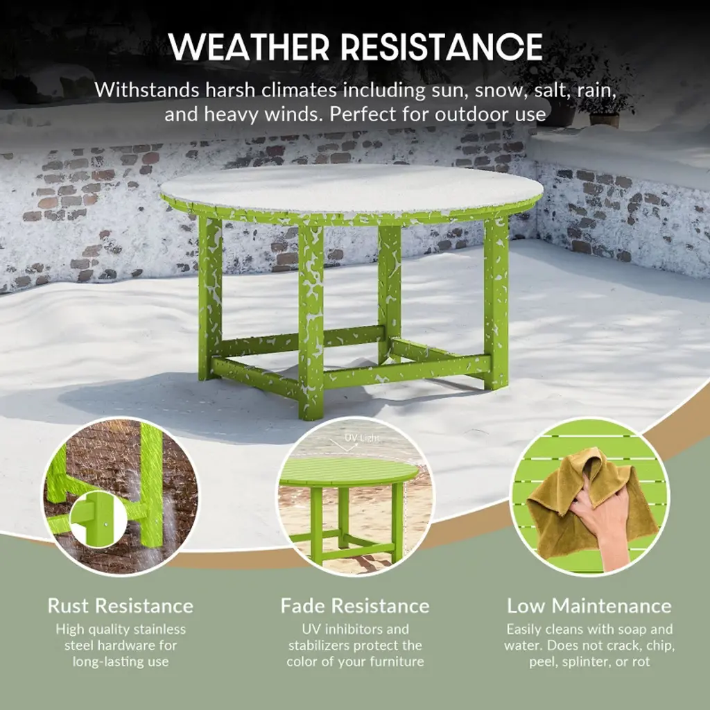 Gather around with your loved ones around our charming 5-piece Adirondack conversation set. Crafted with a durable HDPE all-weather material that is perfect for the outdoors with its resistance to UV and fading. Comfortable chairs with spacious armrest and deep reclined seats to help relieve tension on your lower half and combined with the wide 30" square coffee table that provides plenty of space for all your drinks and a center umbrella hole that can fit 1.5" umbrella poles for added shade.While we strive to accurately represent product colors, please be aware that actual colors may vary slightly due to individual screen settings and lighting conditions. FeaturesSet Includes: Four (4) Adirondack Chairs, One (1) 30" Square Coffee TableConstructed from Durable HDPE Material and Designed to be Stable and SturdyWeather Resistant to Protect Against the Harsh Outdoor Elements and Fade and UV Resistant to Protect Against the Sun30" Inch Wide Table Top Fitted with a 1.5" Center Umbrella Hole to that Fits Most Standard Umbrellas (Umbrella Sold Seperately;Hole Cover Included)4.5" Wide Armrest and Deep Reclined Seat for Tension Relief on your Lower HalfReinforced Table Top Design for Added Durability and Thick Legs with Beam Connection for Added StabilitySmooth and Rounded Edges for Added Protection Against Scratches or BruisesDetails:Product Type: Patio Conversation SetsWhat's Included: (4) Adirondack Chair; (1) Coffee TableAdirondack ChairDimensions: 31.75" W x 33.5" D x 36.5" HWeight: 42 lbs.Seat Width: 22"Seat Depth: 20"Seat Height: 15"Weight Capacity: 450 lbs.Coffee TableDimensions: 30.75" W x 30.75" D x 17.5" HWeight: 35.25 lbs.Weight Capacity: 300 lbs.