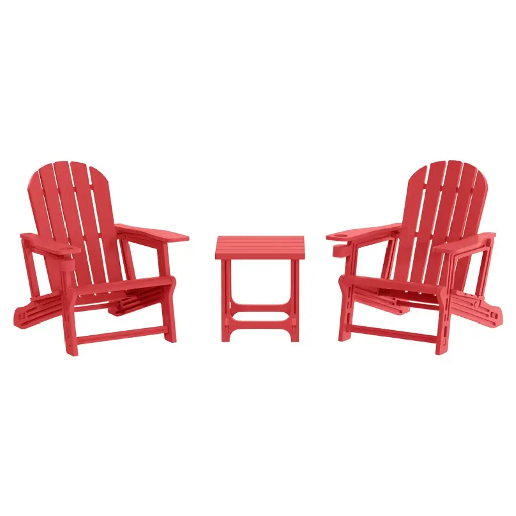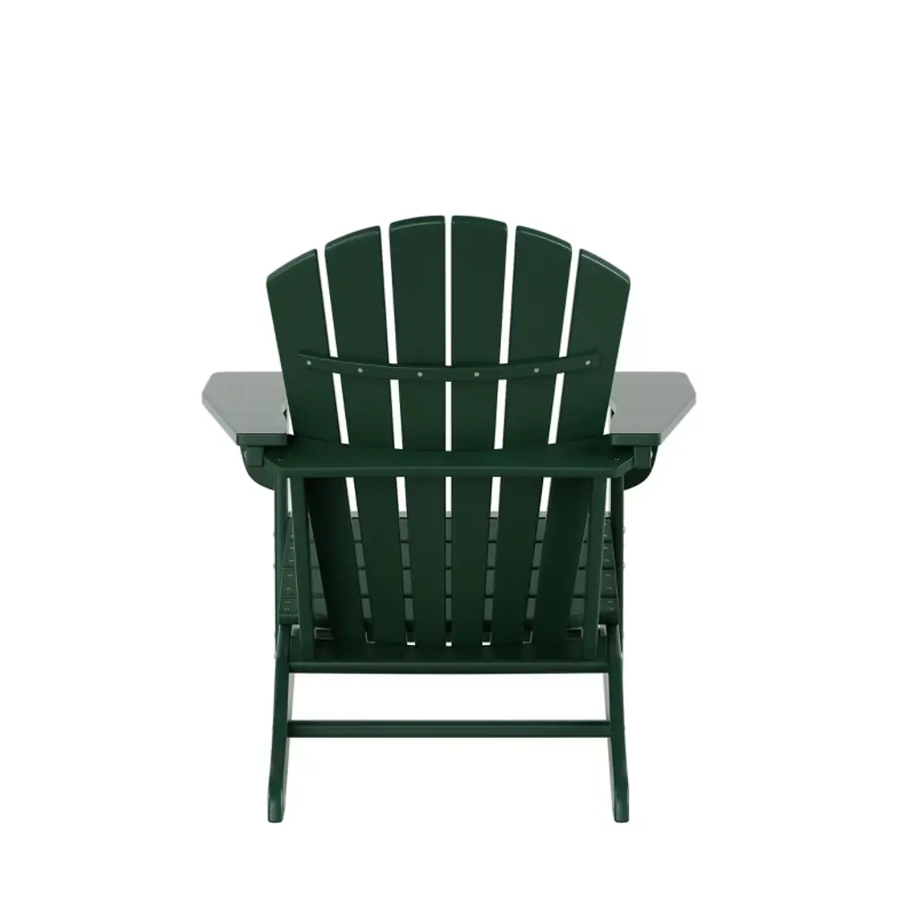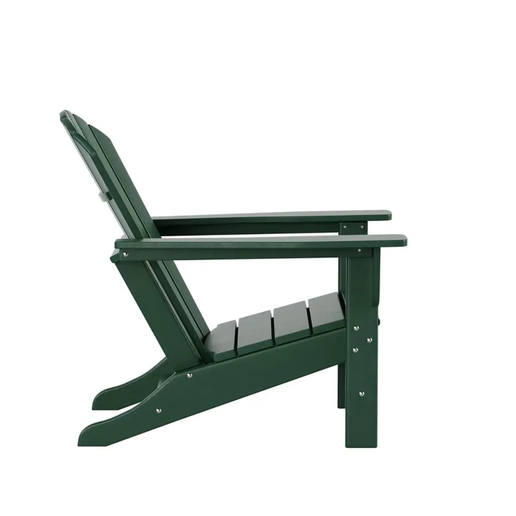 Sit back, relax, and catch a tan or enjoy some family time on these stunningly crafted 5-piece Adirondack chairs with ottoman set. Designed with comfort and style in mind, with a broad armrest for extra armroom, a seashell design and curved reclined backrest for a more comfortable seat, and a high back that helps create less tension on your back. Constructed from a durable and solid HDPE material that is weather resistant and, unlike wood, won't rot, crack, chip, peel, or splinter. A UV-protective coating prevents fading, keeping the colors vibrant and amazing all year long. These attractive chairs are easy to clean, making them perfect for the outdoors, and they are sure to make your backyard the place to be.While we strive to accurately represent product colors, please be aware that actual colors may vary slightly due to individual screen settings and lighting conditions. FeaturesSet includes two (2) Adirondack chairs with two (2) ottomans and one (1) side tablestain-resistant in case of any accidentsWeather-resistant material safeguards against the elements and UV ray coating stops color fadingSturdy construction that is long-lasting and resistant to chipping, flaking, or splintersSimple to clean with just soap, water, and a soft brushVariety of lovely fade-resistant colorsMade of weather-resistant material that can survive the outdoor elementsDetails:Product Type: Patio Conversation SetsWhat's Included: (2) Adirondack Chair; (2) Ottoman; (1) Side TableAdirondack ChairDimensions: 31.75" W x 33.5" D x 36.5" HWeight: 42 lbs.Seat Width: 22"Seat Depth: 20"Seat Height: 15"Weight Capacity: 450 lbs.OttomanDimensions: 20" W x 13.5" D x 18.75" HWeight: 8.75 lbs.Seat Width: 22"Seat Depth: 20"Side TableDimensions: 17.5" W x 17.5" D x 18" HWeight: 10.5 lbs.Weight Capacity: 180 lbs.