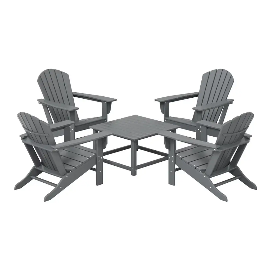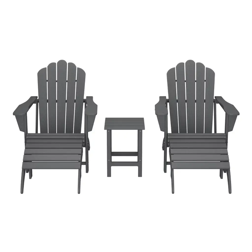 Westintrends Dylan Hdpe Outdoor Patio Adirondack Chairs With Ottomans And Side Table (5-piece Conversation Set), Gray