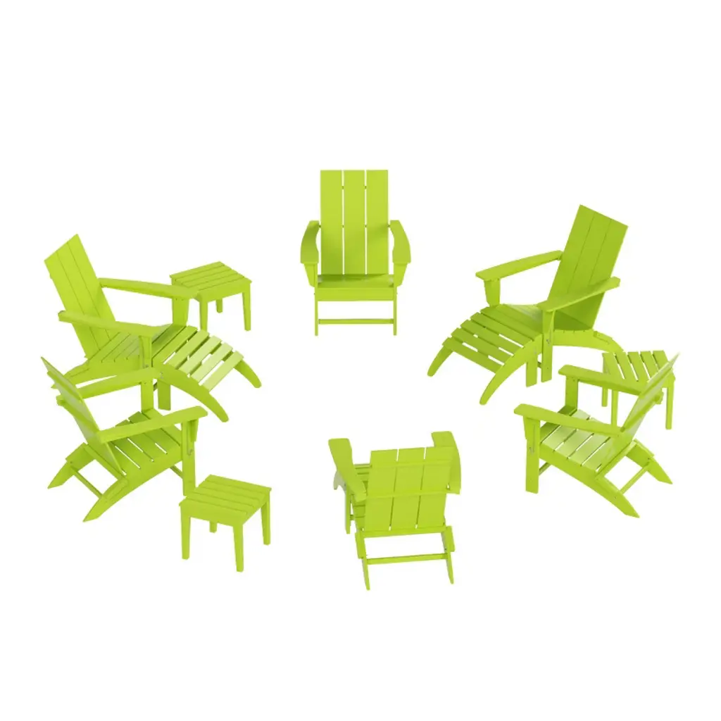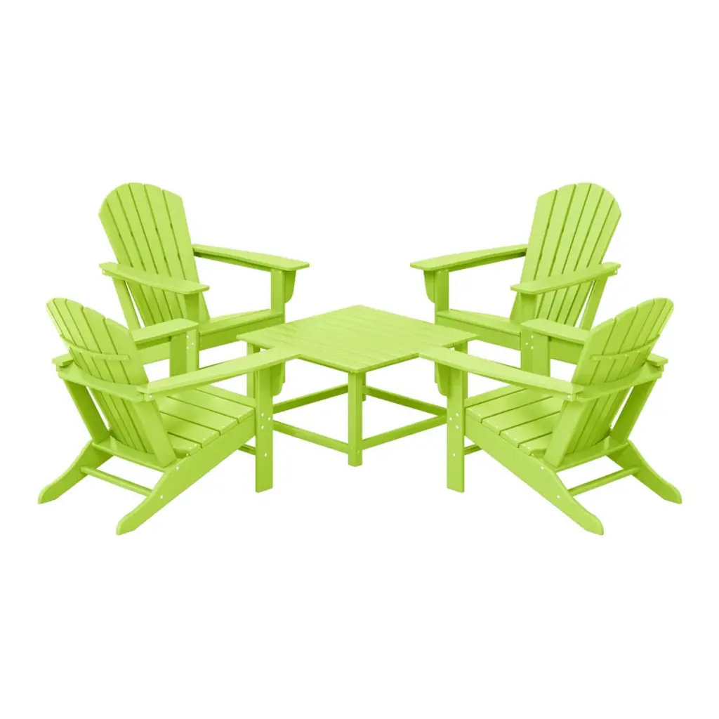 Westintrends Dylan Hdpe Outdoor Patio Adirondack Chairs With Ottomans And Side Table (5-piece Conversation Set), Lime Green