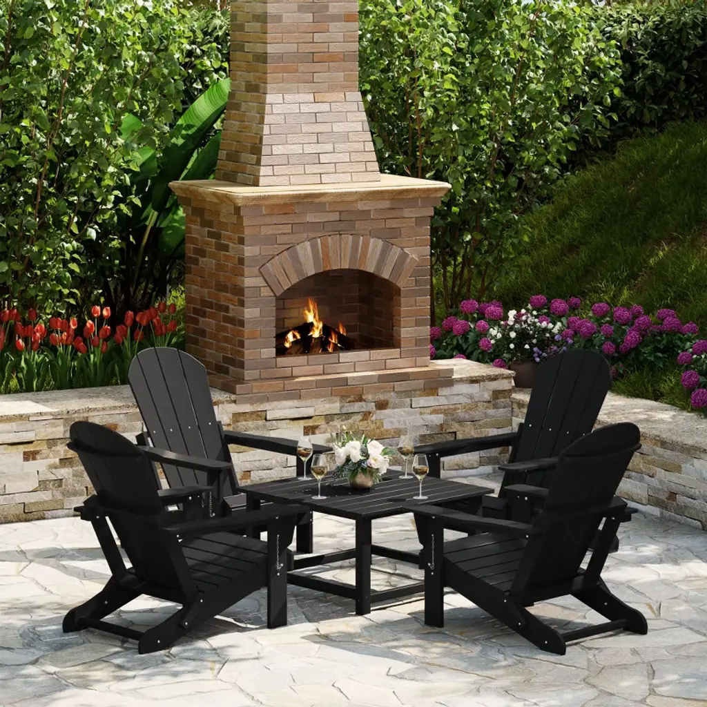 Westintrends Malibu 5-piece Hdpe Adirondack Chair Outdoor Patio Square Table Conversation Set, Black
