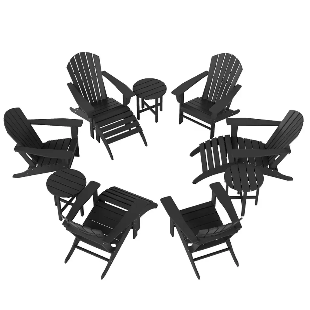 Elevate your patio with these vibrant and eye-catching foldable Adirondack chairs. The chair's HDPE construction can withstand the outdoor elements with the weather-resistant, UV- and fade-resistant material that will keep the chair's vibrant color all year. With wide armrests, a contoured waterfall seat, and a low seat depth, you can sit right in comfort. Gather around the firepit with these beautiful folding Adirondack chairs.While we strive to accurately represent product colors, please be aware that actual colors may vary slightly due to individual screen settings and lighting conditions. FeaturesSet Includes: twelve (12) HDPE Adirondack chairsFade and UV resistant materialFoldable chairs for easy storageWide contoured seat with waterfall restWide armrest and high backrestSimple to assembleDetails:Product Type: Patio Conversation SetsWhat's Included: (6) Adirondack Chair; (3) Ottoman; (3) Side TableAdirondack ChairDimensions: 29" W x 31.5" D x 34.5" HWeight: 32.75 lbs.Seat Width: 20.25"Seat Depth: 20"Seat Height: 14.5"Weight Capacity: 450 lbs.OttomanDimensions: 20" W x 13.5" D x 18.75" HWeight: 8.75 lbs.Table Top Width: 14"Table Top Depth: 14"Table Top Thickness: 0.5"Seat Width: 20.25"Seat Depth: 21"Side TableDimensions: 14" W x 14" D x 18" HWeight: 9 lbs.Table Top Width: 14"Table Top Depth: 14"Table Top Thickness: 0.5"Weight Capacity: 180 lbs.