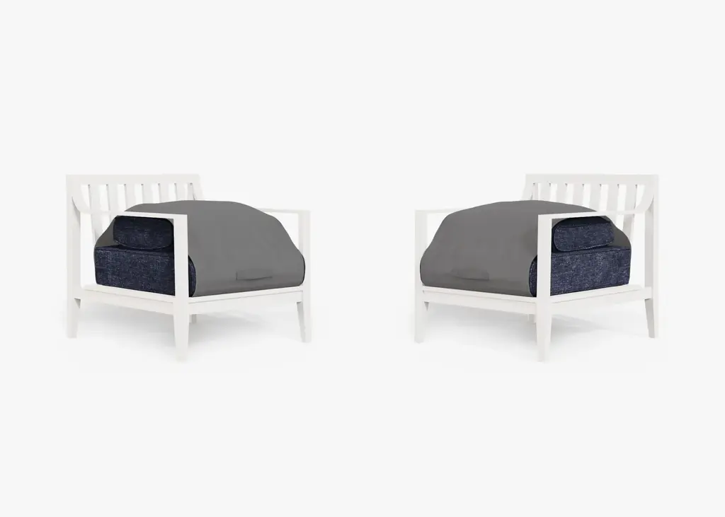 Enjoy indoor comfort outside. Sleek, lightweight, and durably designed with weatherproof aluminum, Outer’s modular furniture invites you to relax on luxuriously comfortable memory foam cushions. The built-in, easy to use OuterShell® cover protects the cushions when not in use, and features Velcro to secure it in place and a handle for convenient transport and storage. No assembly required. Includes 2 armchairs.