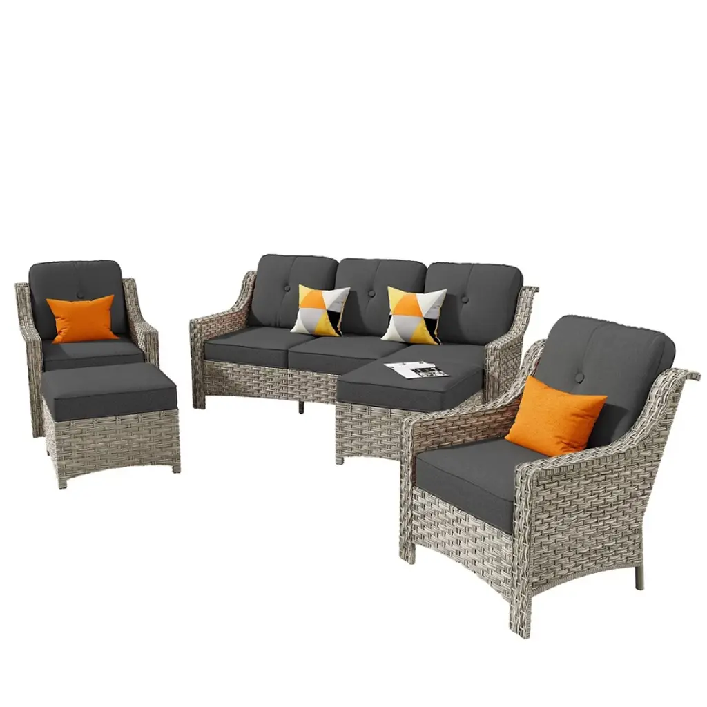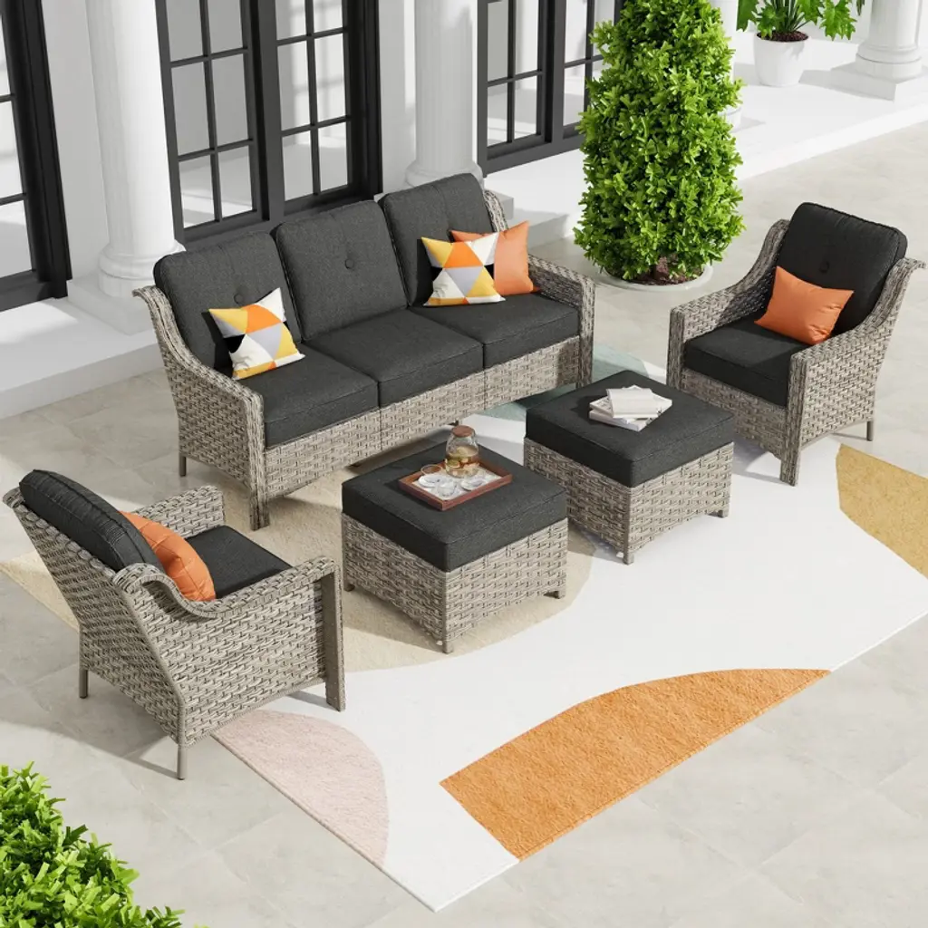 Xizzi 5 Pieces Wicker Furniture, Outside Conversation Set, 3-seat Sofa With Cushion, High Back Rattan Chairs And Ottomans For Garden Backyard, Black