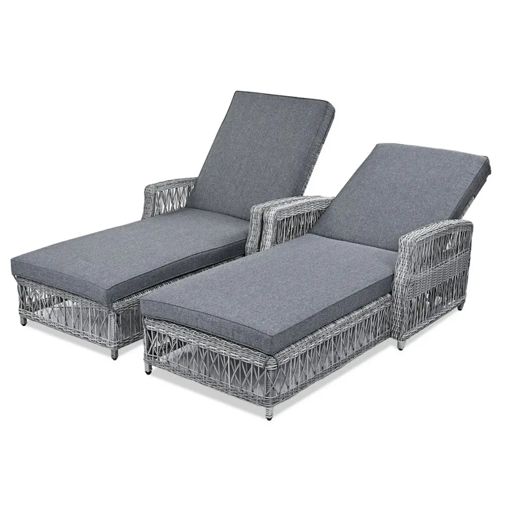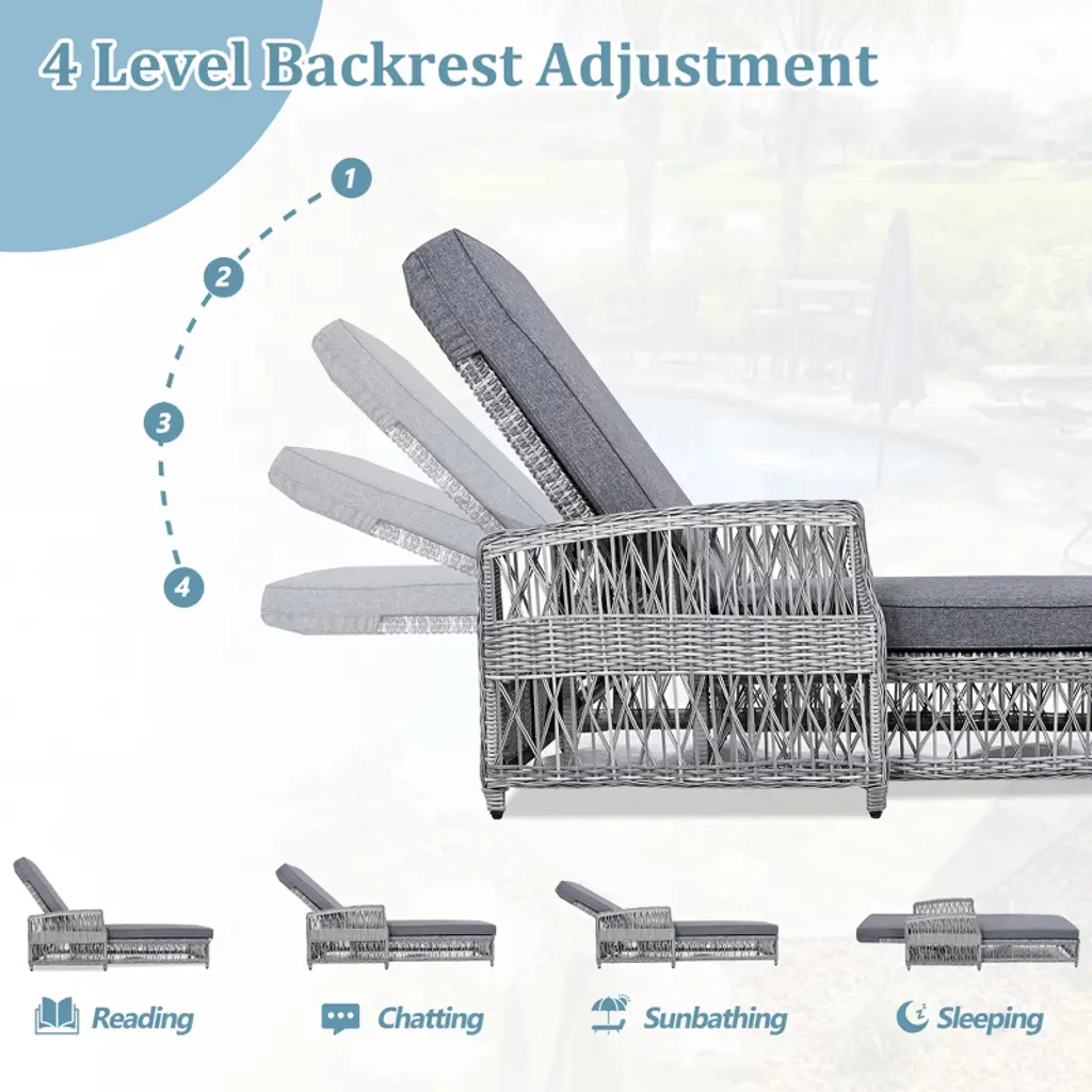 Yoocozz 2-piece Adjustable Wicker Chaise Lounge Set With Removable Cushions- Gray